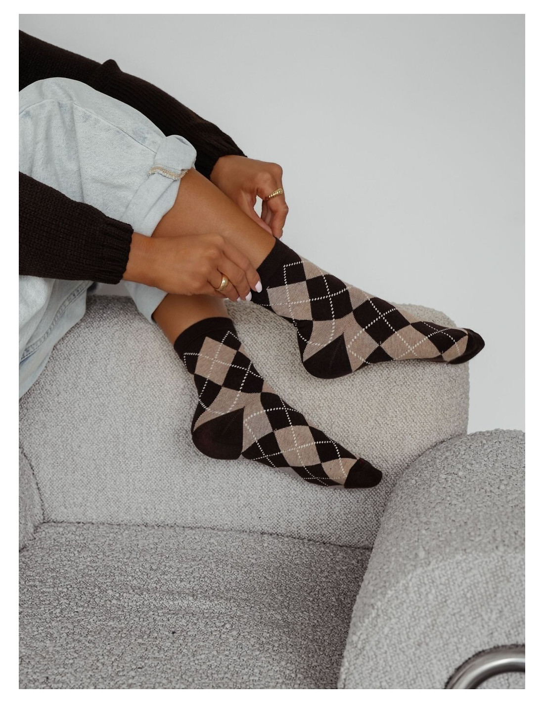 Skarpetki damskie - wysokiej jakości bawełna - print w kolorowe romby - płaskie szwy - wygodny ściągacz