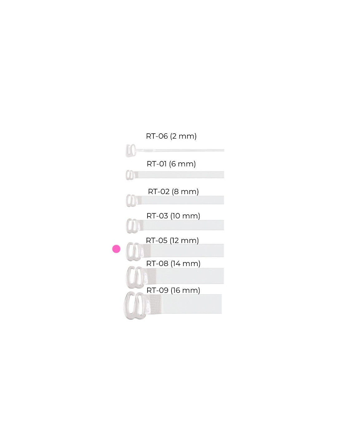 12 mm pločio dirželiai - pagaminti iš permatomos, odai inertiškos medžiagos - suvirinti, kad būtų užtikrintas kablio ir dirželio jungties tvirtumas - skaidraus plastiko spaustukas