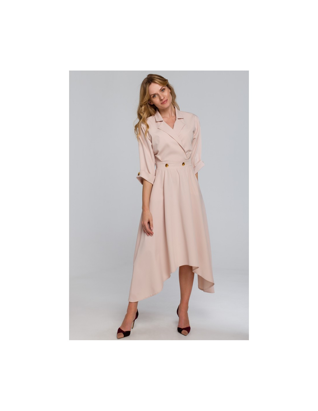 - Midi ilgio, dekoruota žavia apykakle, dailiomis sagutėmis su 3/4 rankovėmis;