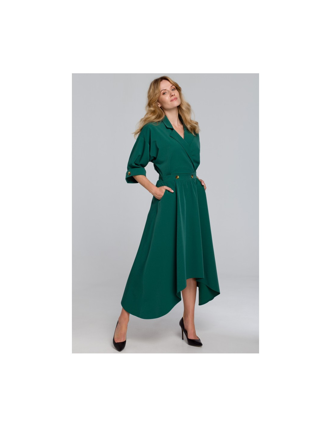 - Midi ilgio, dekoruota žavia apykakle, dailiomis sagutėmis su 3/4 rankovėmis;