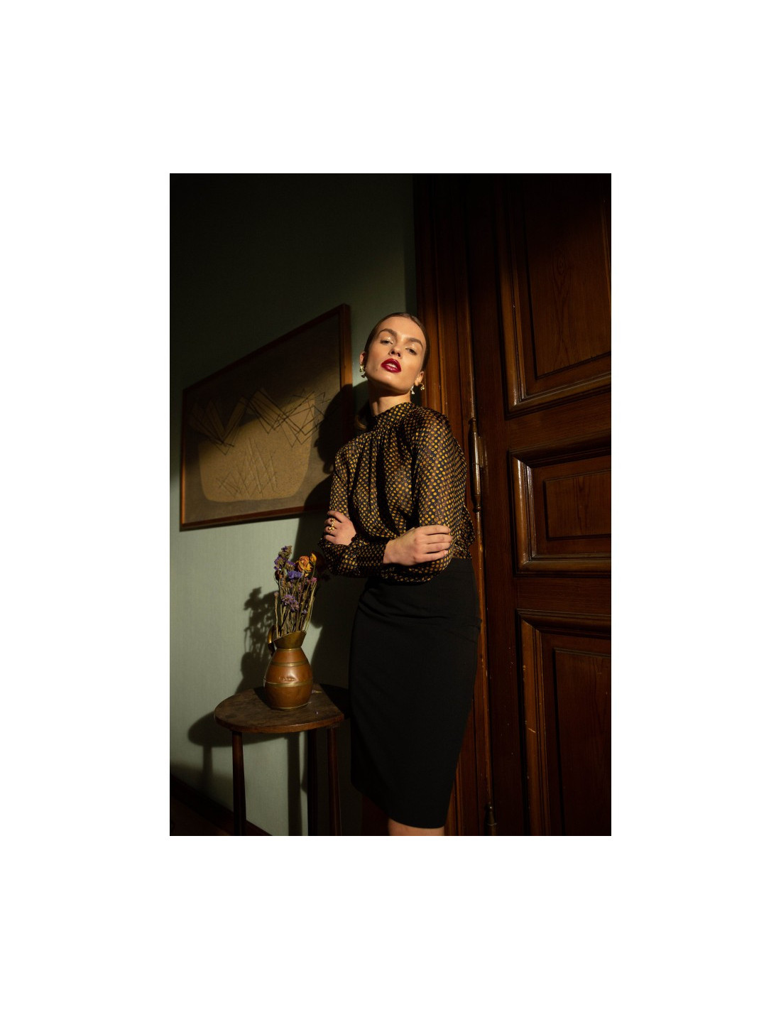 - Šifoninio audinio, elegantiška palaidinė su dailiu kaspinu nugaroje;