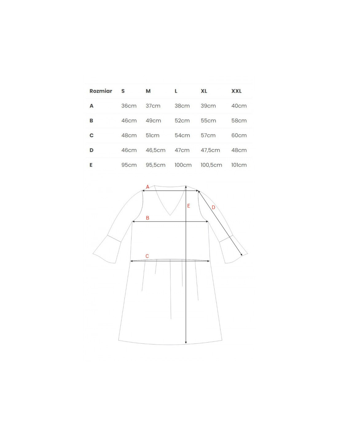 | Pečių plotis | 36cm | 37cm | 38cm | 39cm | 40cm |