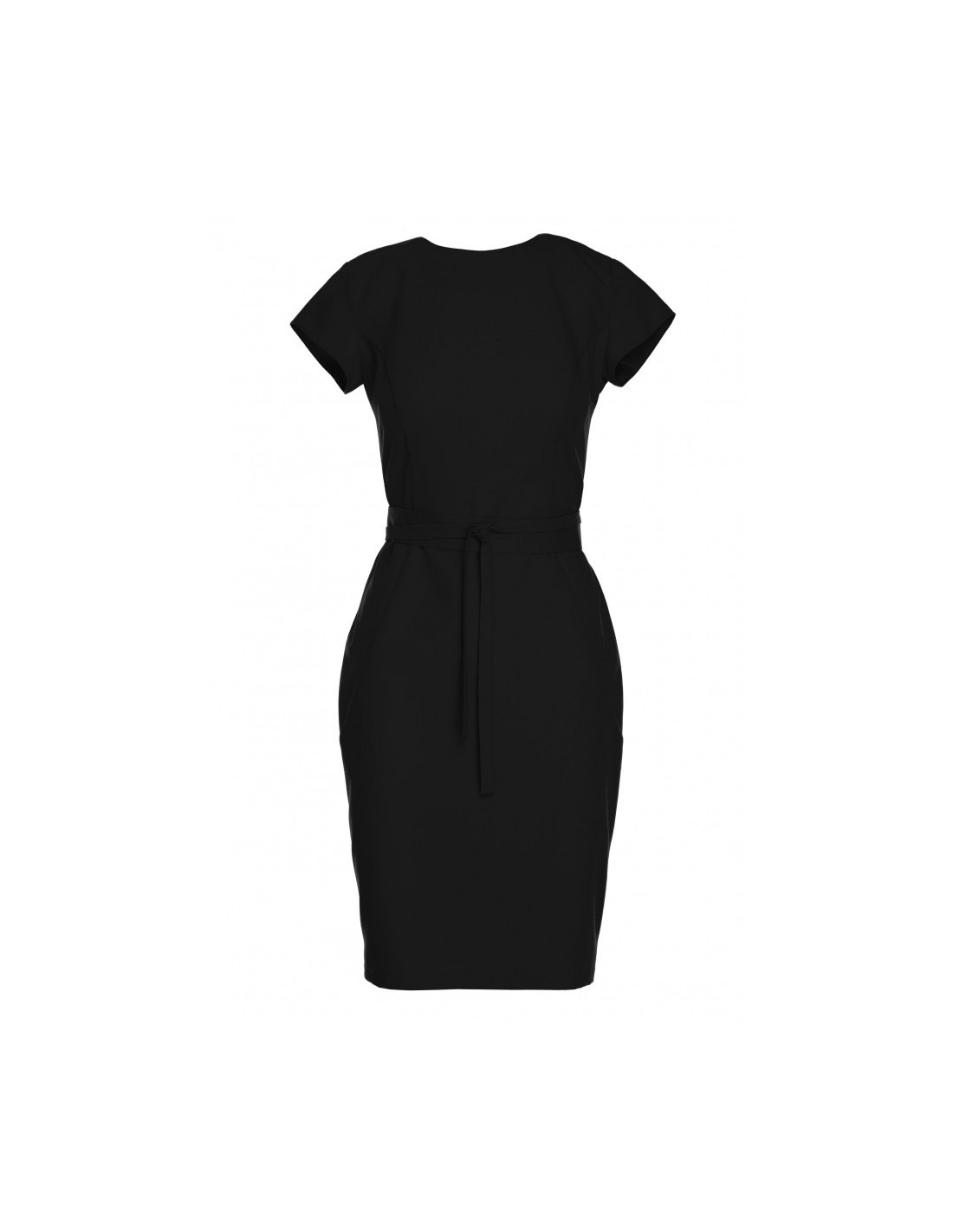 - Pieštuko silueto, elegantiška suknelė su dirželiu trumpomis rankovėmis;