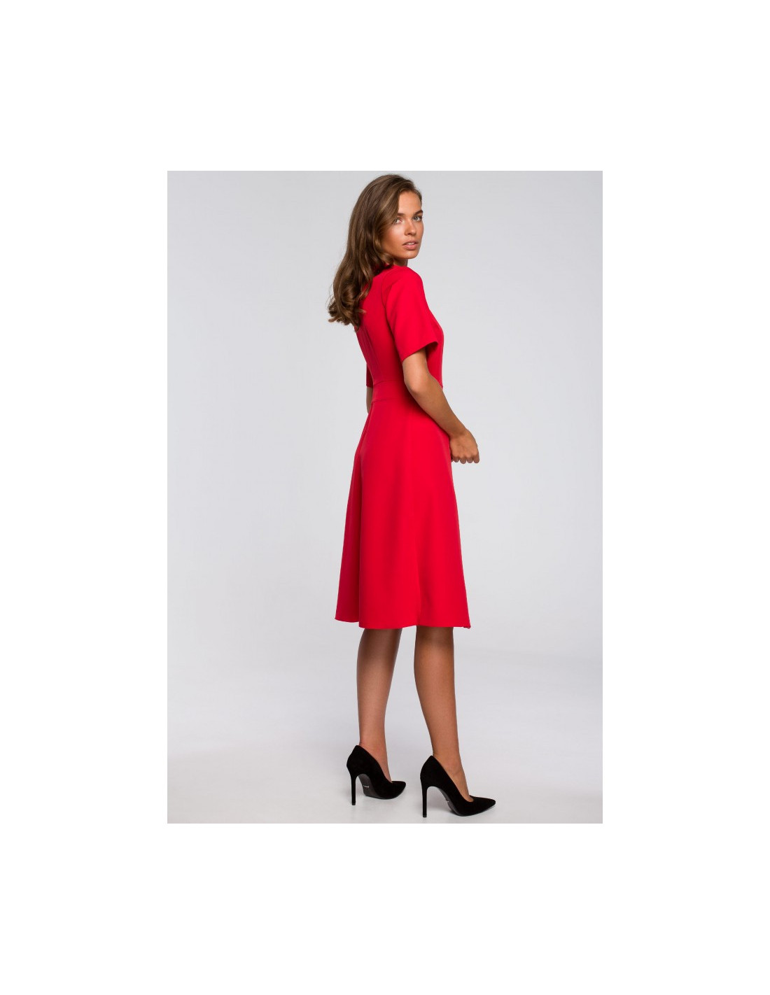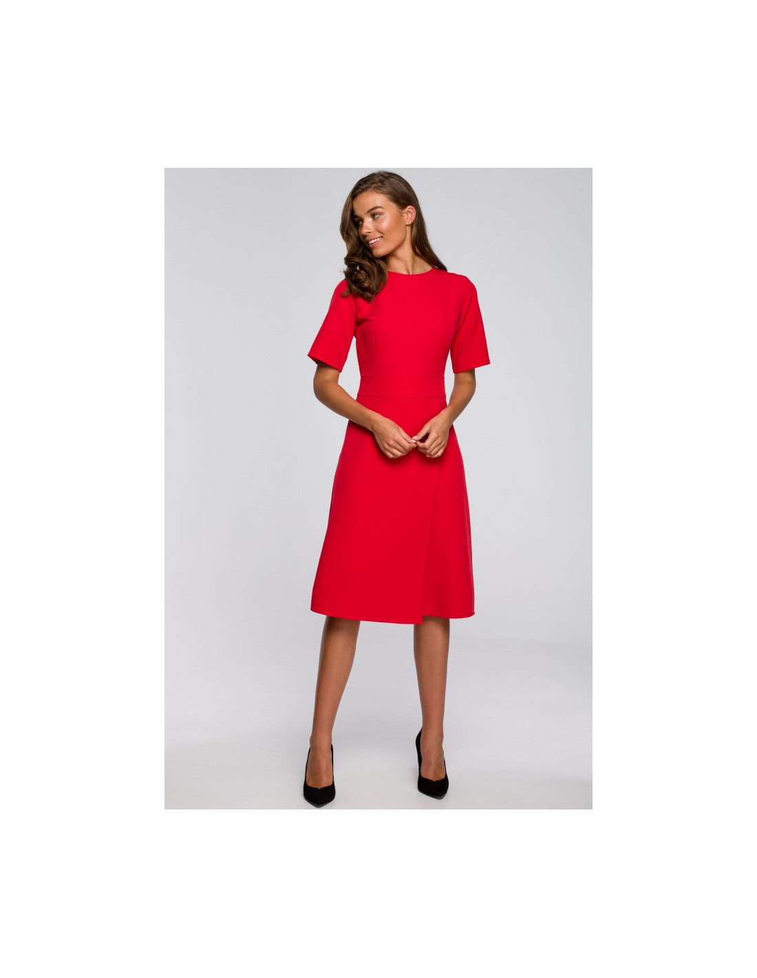 - Elegantiška suknelė su kloste priekyje trumpomis rankovėmis;