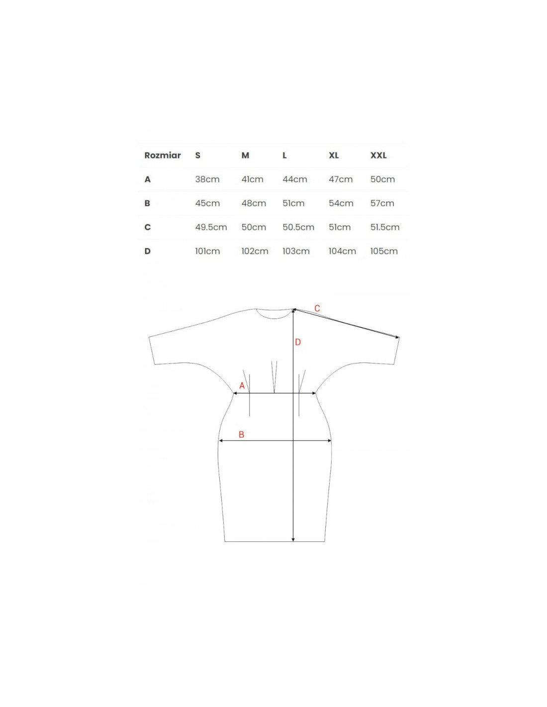 | Dydis | S | M | L | XL | XXL |
