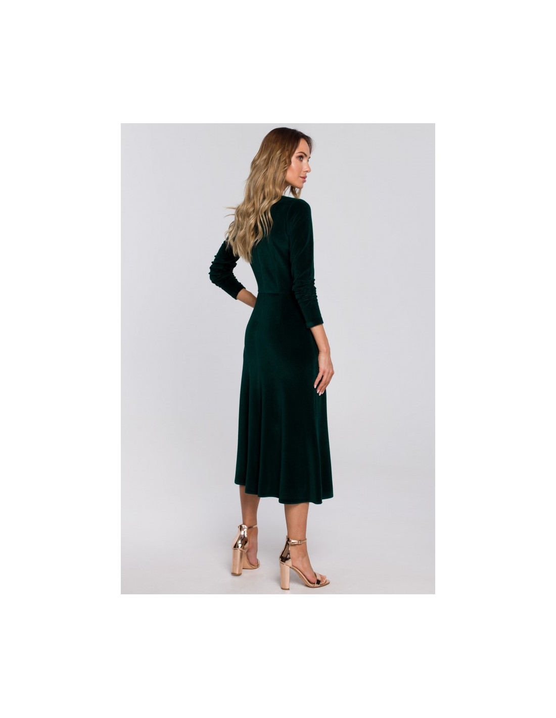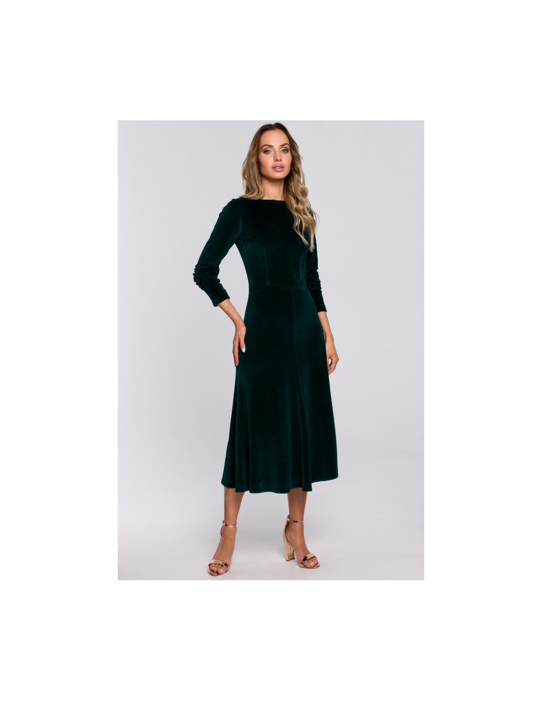 - Elegantiška, veliūrinio audinio midi ilgio suknelė su rauktomis rankovėmis;