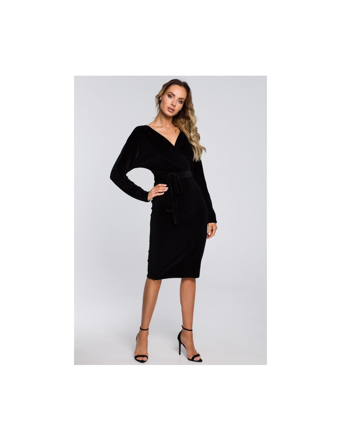 - Prabangi ir elegantiška, veliūrinio audinio kimono modelio viršaus suknelė su dirželiu;