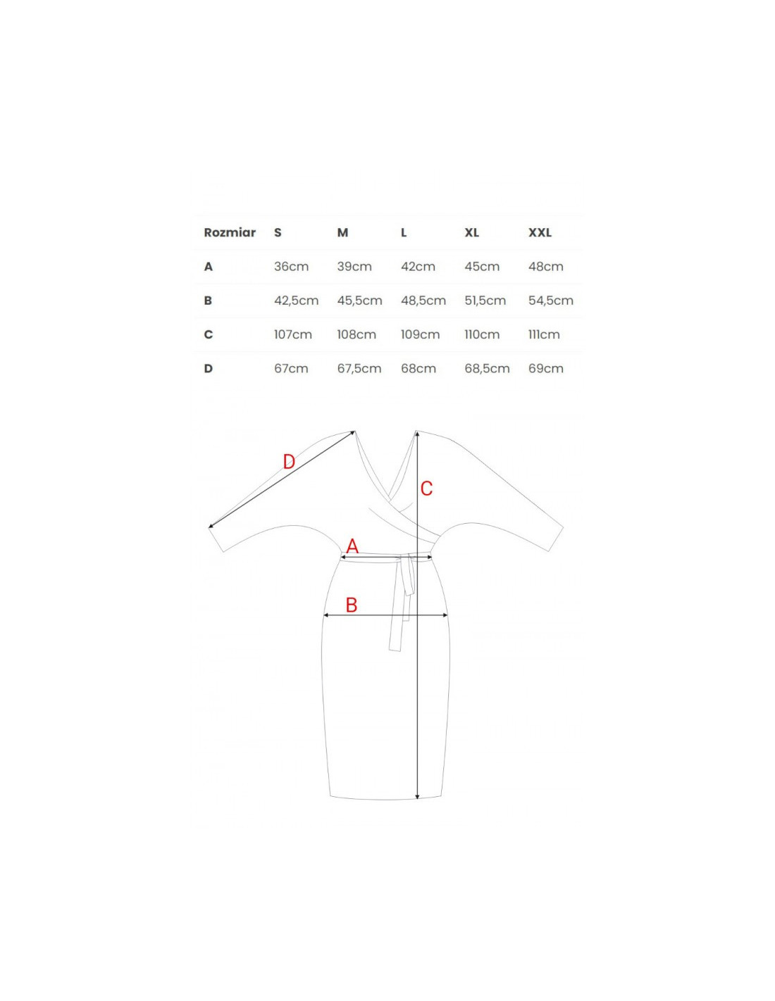 • Tikslūs išmatavimai pateikti lentelėje, ramybės būsenoje (krūtinės, liemens, klubų apimtis reikia dauginti iš dviejų).