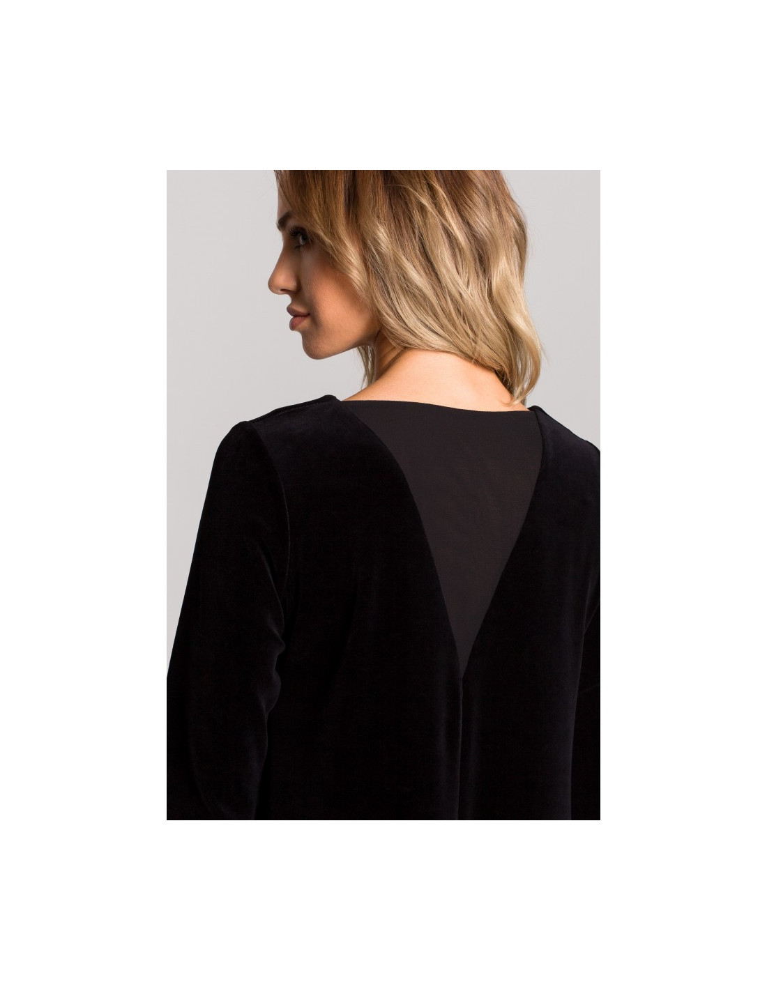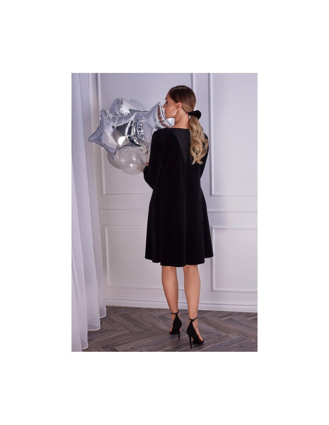 - Veliūrinio audinio, prabangi bei daili varpelio silueto suknelė ilgomis rankovėmis;