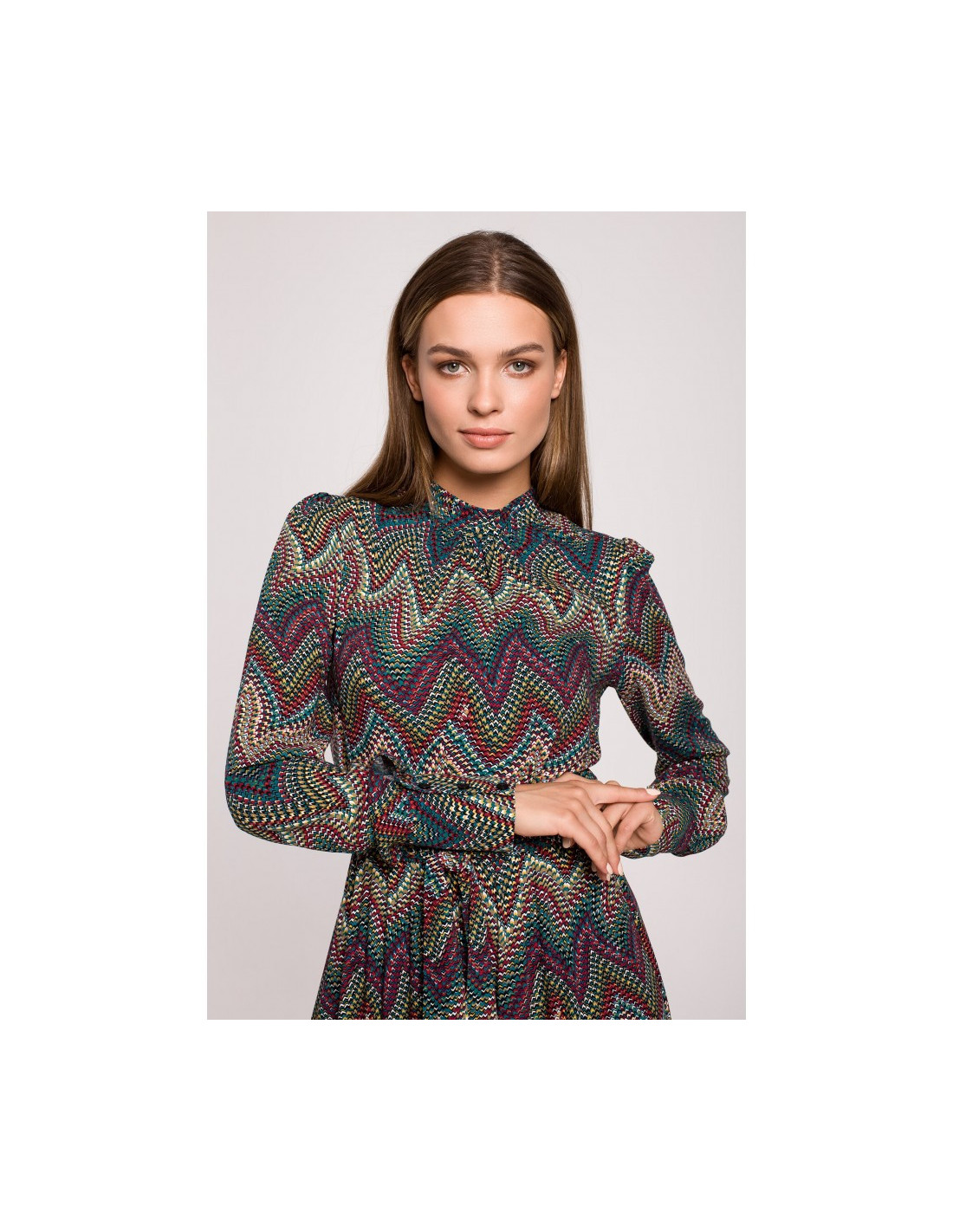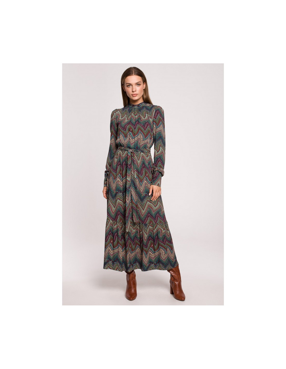 Geometrinio zigzago rašto marga maxi ilgio suknelė su dirželiu;
