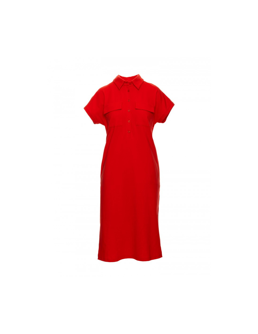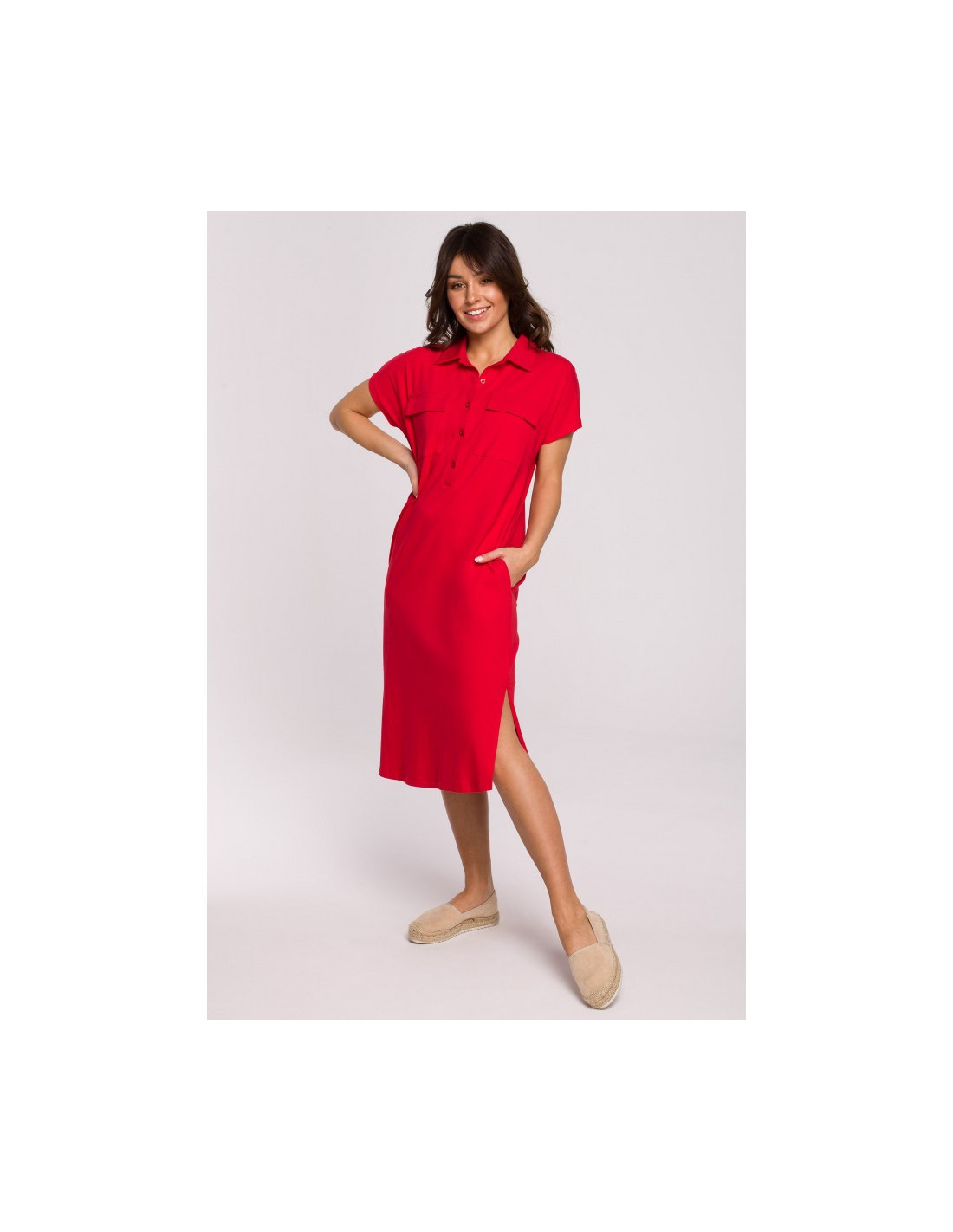 Patogi marškinių tipo suknelė su kišenėmis ir trumpomis rankovėmis;