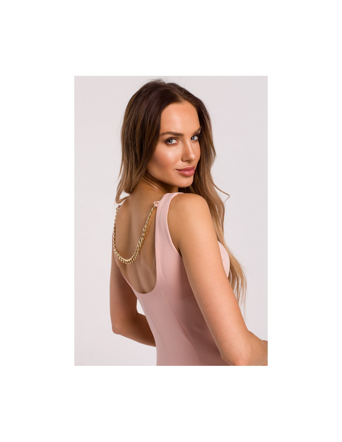 Klasikinė, ekstravagantiška suknelė su grandinėle nugaroje;
