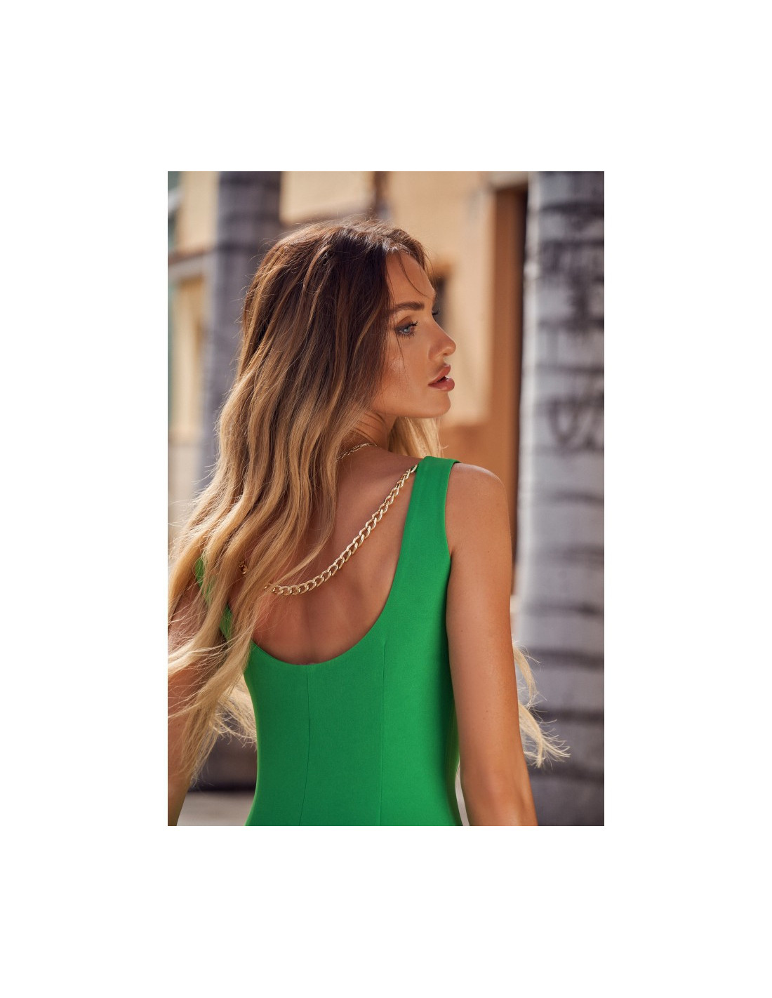 Klasikinė, ekstravagantiška suknelė su grandinėle nugaroje;
