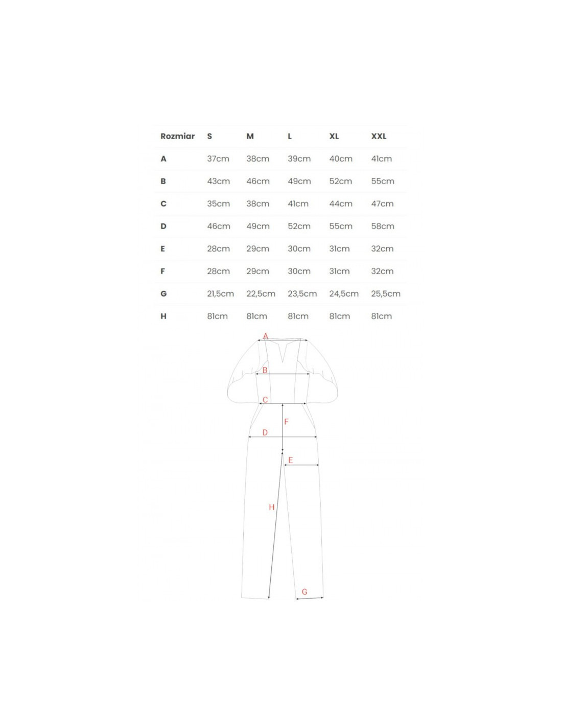| Pečių plotis | 39cm | 40cm | 41cm | 42cm | 43cm |