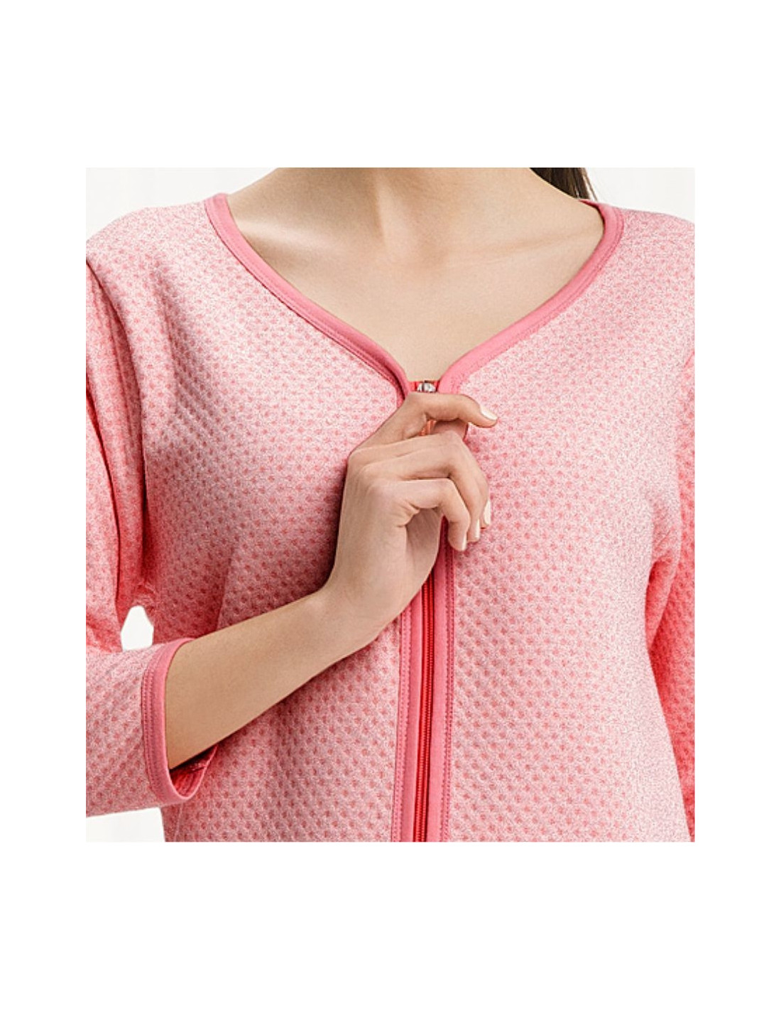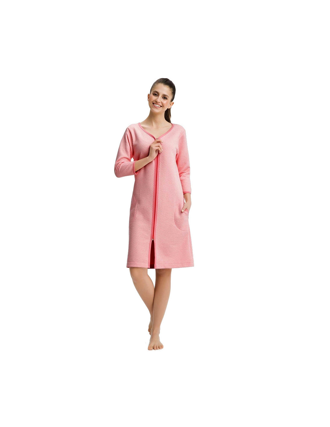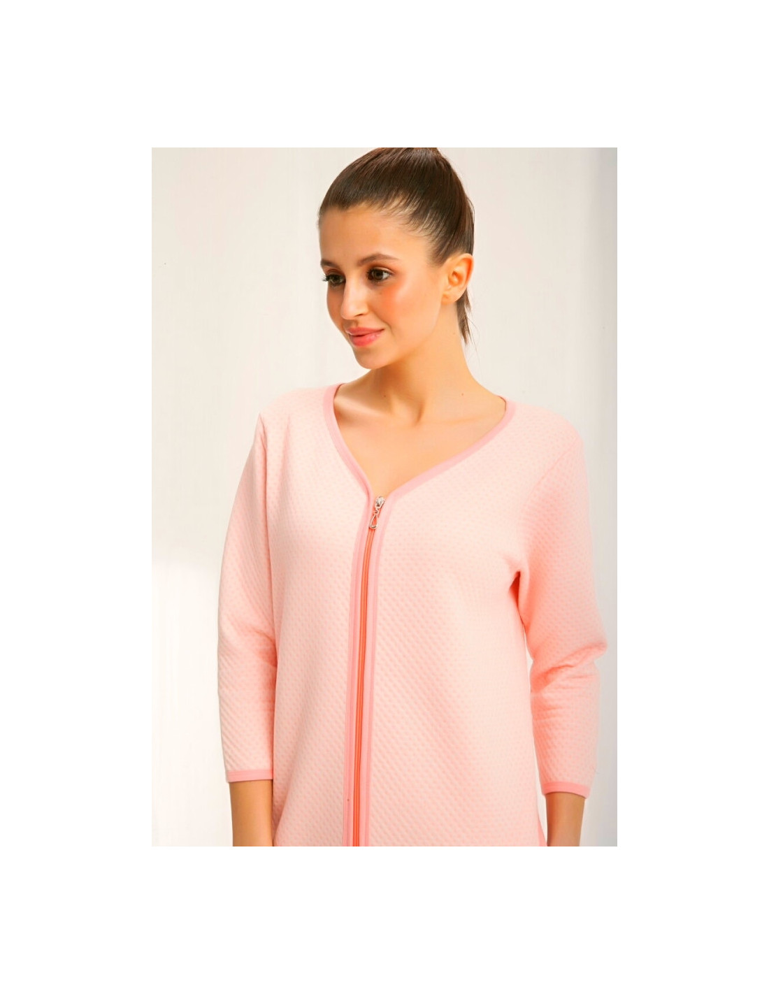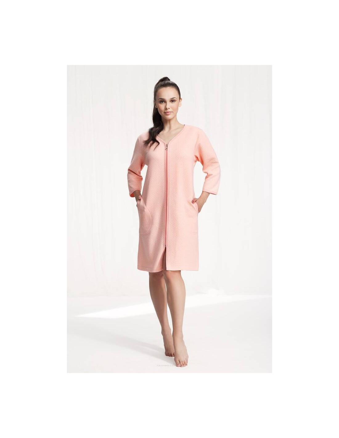 Chalatas ilgomis rankovėmis - iš malonios medvilnės - reljefinis raštas - užsegamas užtrauktuku - kišenės ant klubų