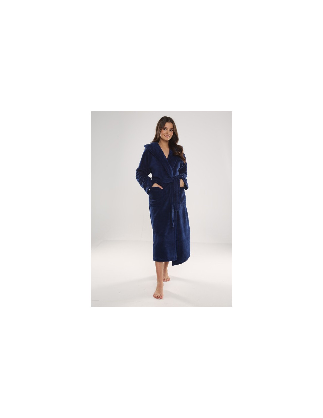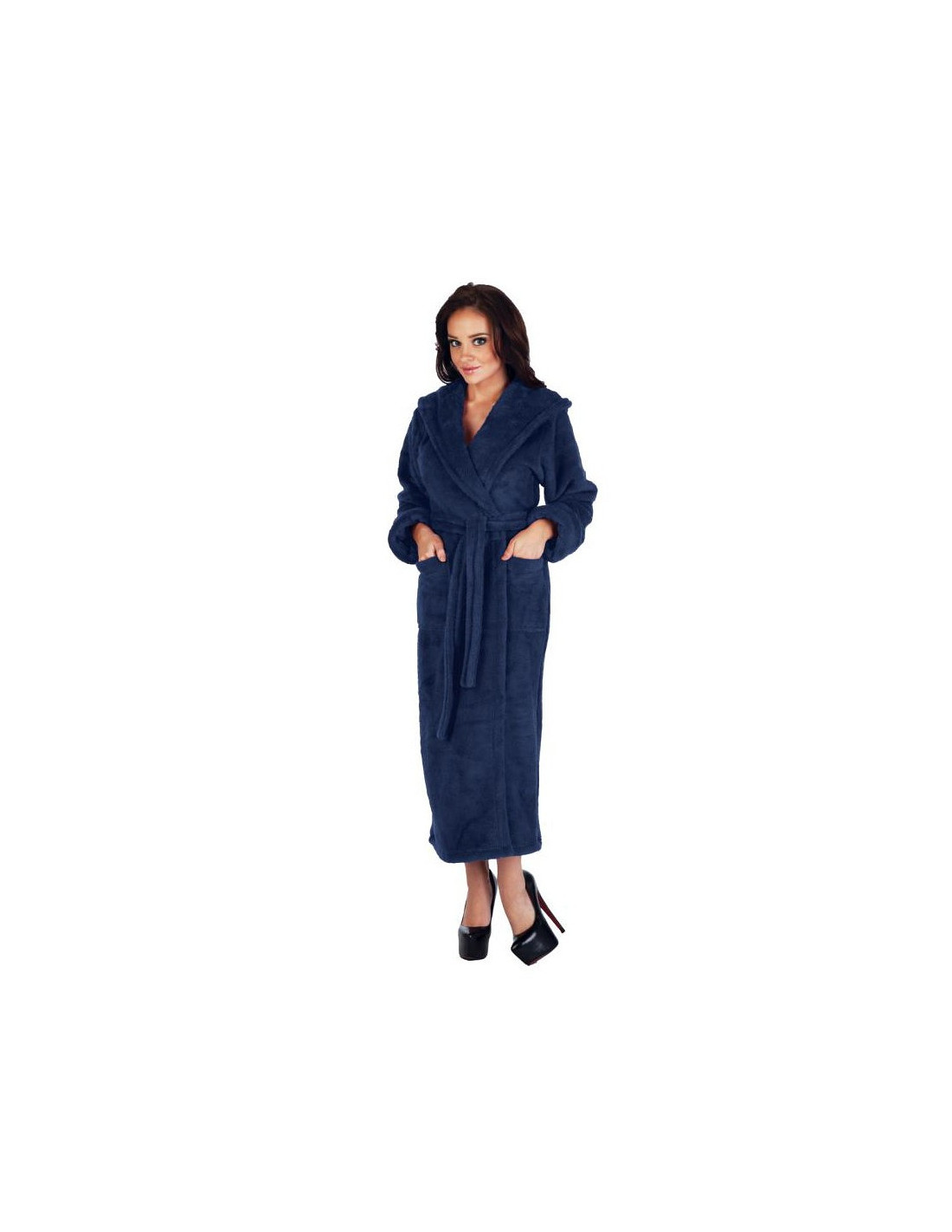 Ilgas, patogus moteriškas chalatas su gobtuvu - pagamintas iš minkšto trikotažinio švelnaus audinio - surišamas per juosmenį, su kišenėmis