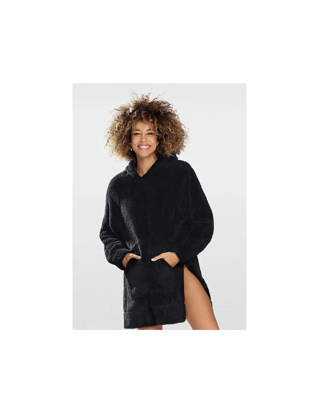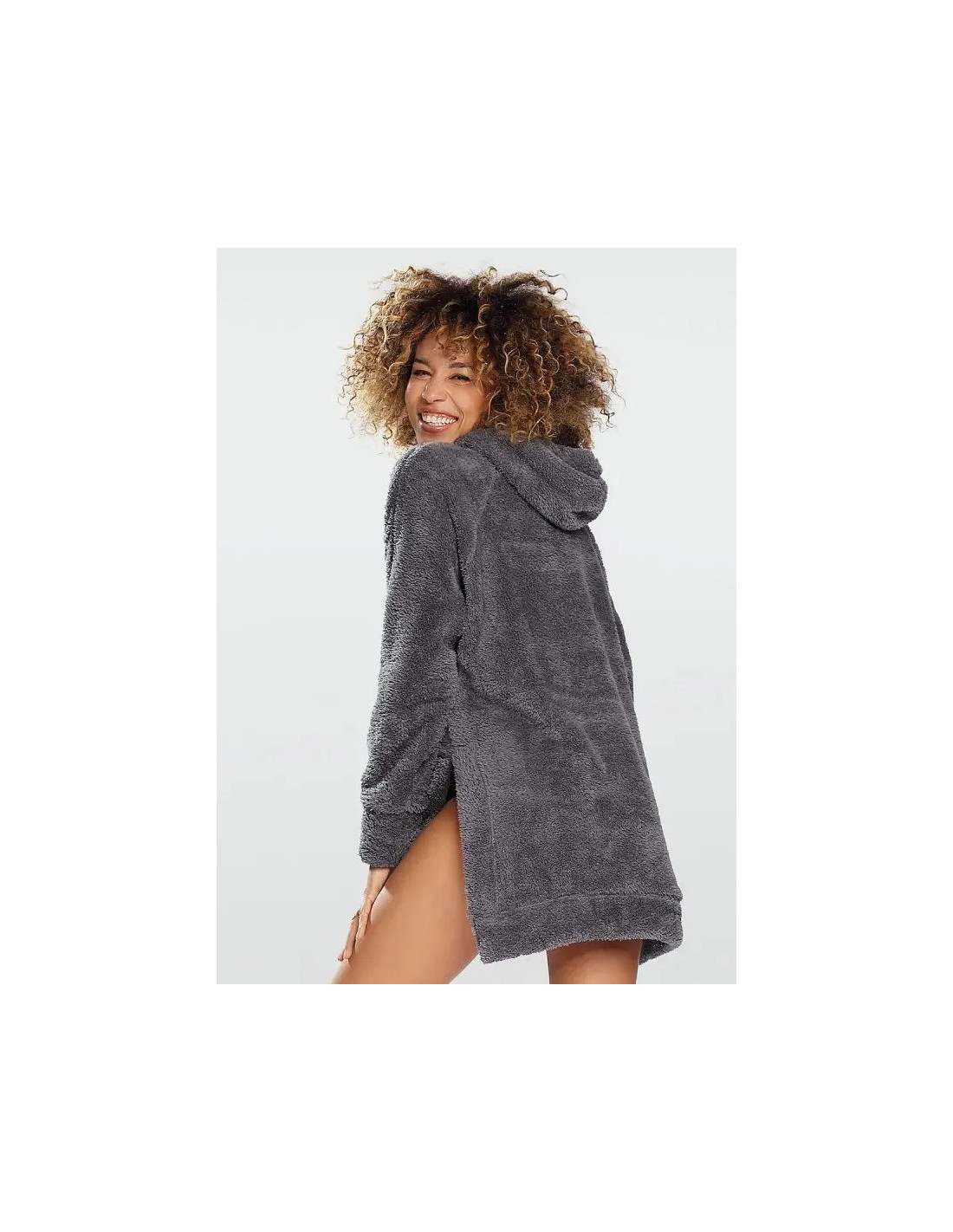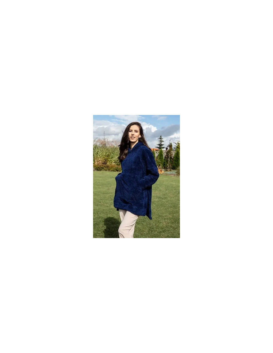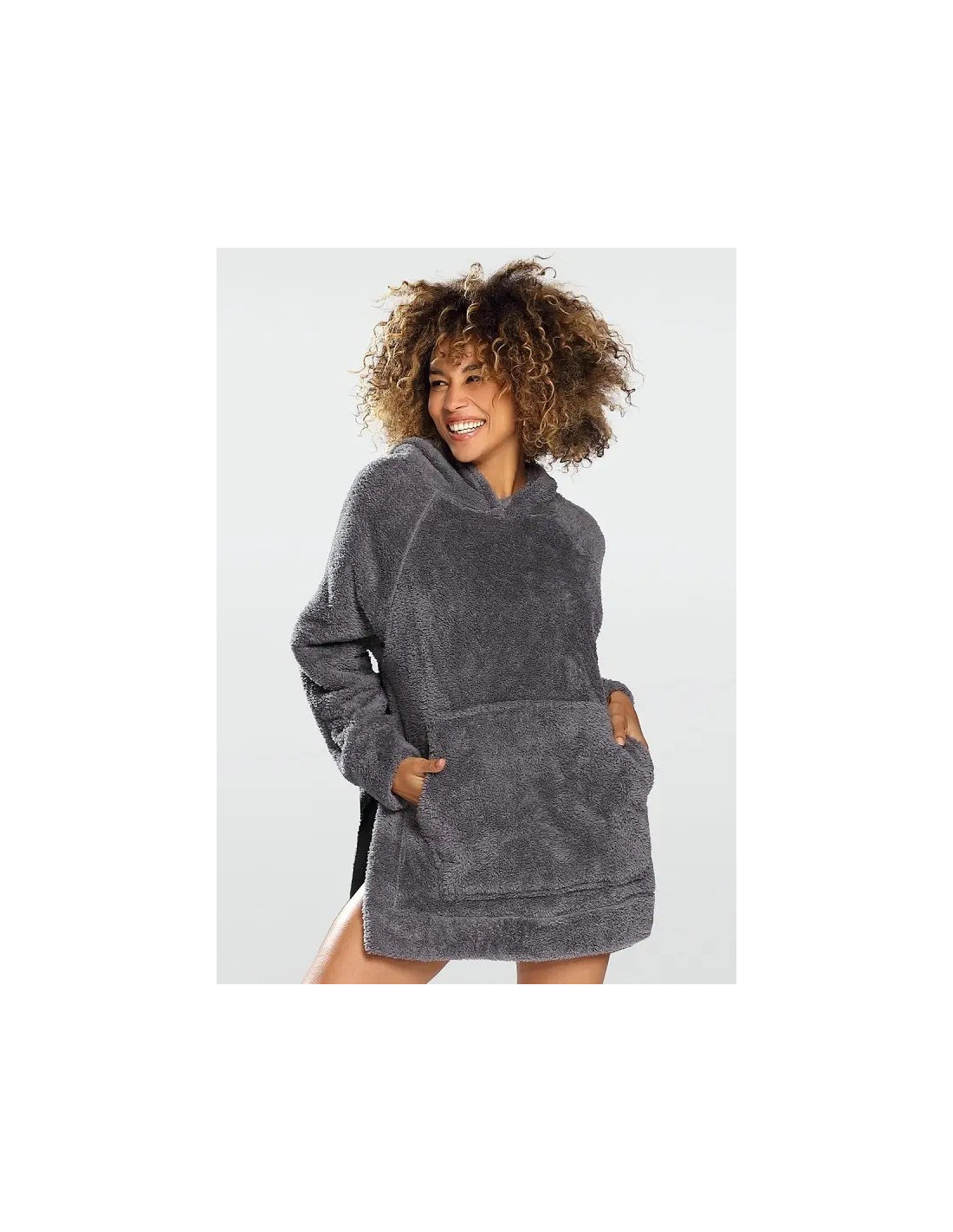Šiltas moteriškas megztinis su gobtuvu - minkštas, pūkuotas megztas frotinis audinys - laisvas, patogus kirpimas - ilgos rankovės - didelė kengūros kišenė ant pilvo - šiek tiek pailga nugara
