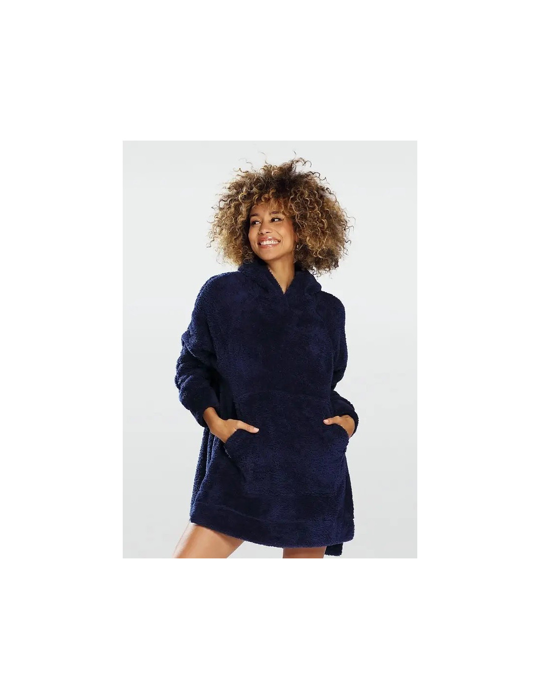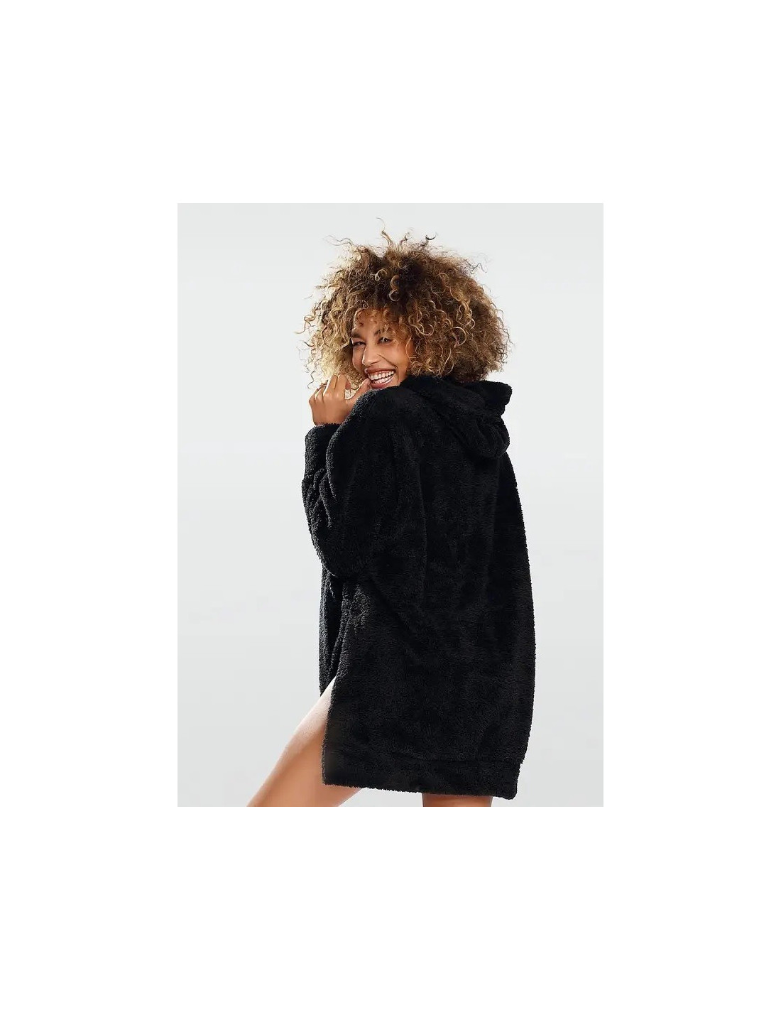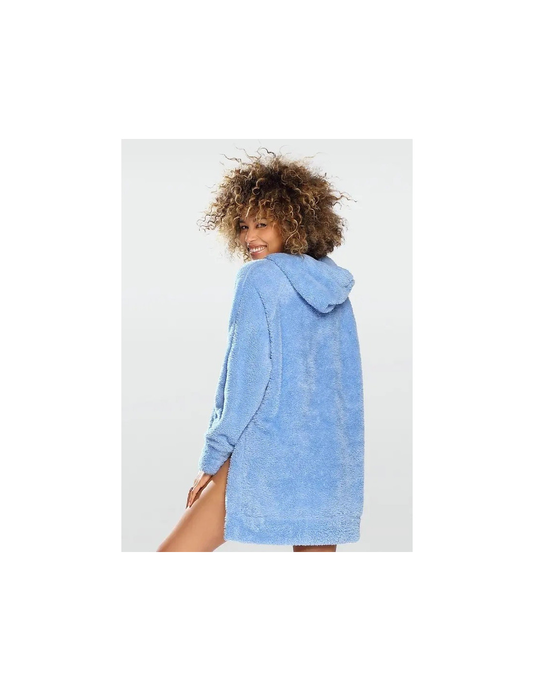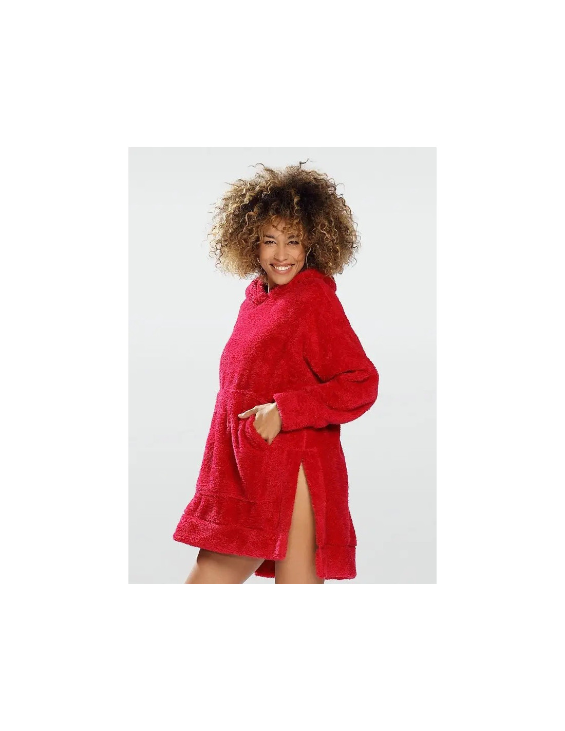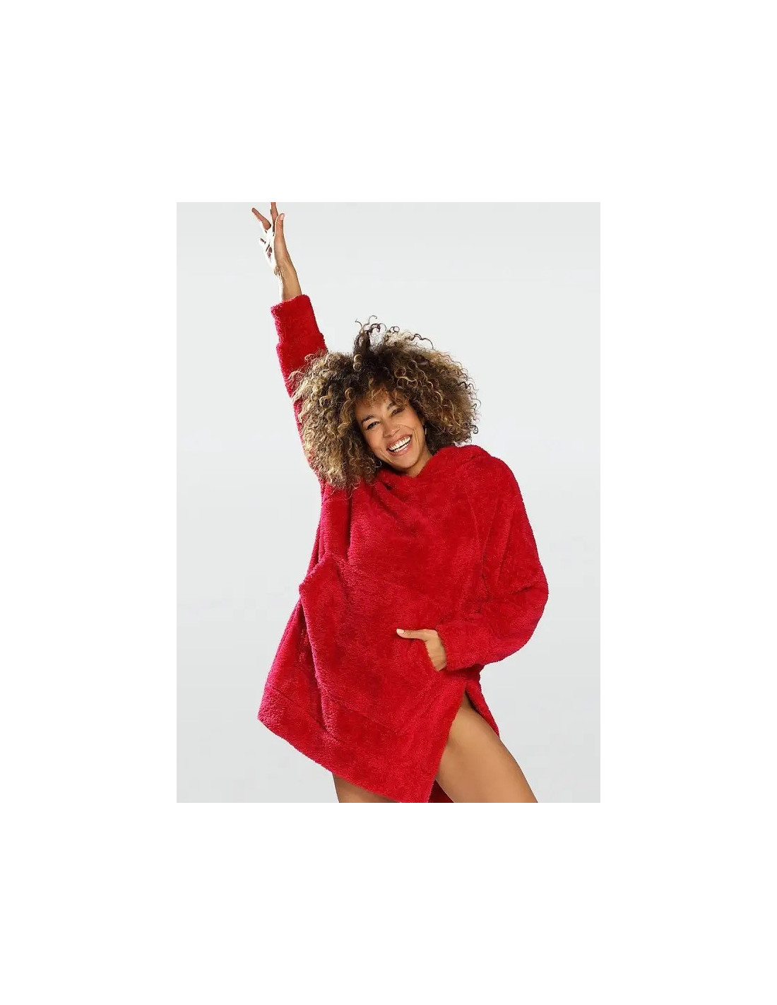 Šiltas moteriškas megztinis su gobtuvu - minkštas, pūkuotas megztas frotinis audinys - laisvas, patogus kirpimas - ilgos rankovės - didelė kengūros kišenė ant pilvo - šiek tiek pailga nugara