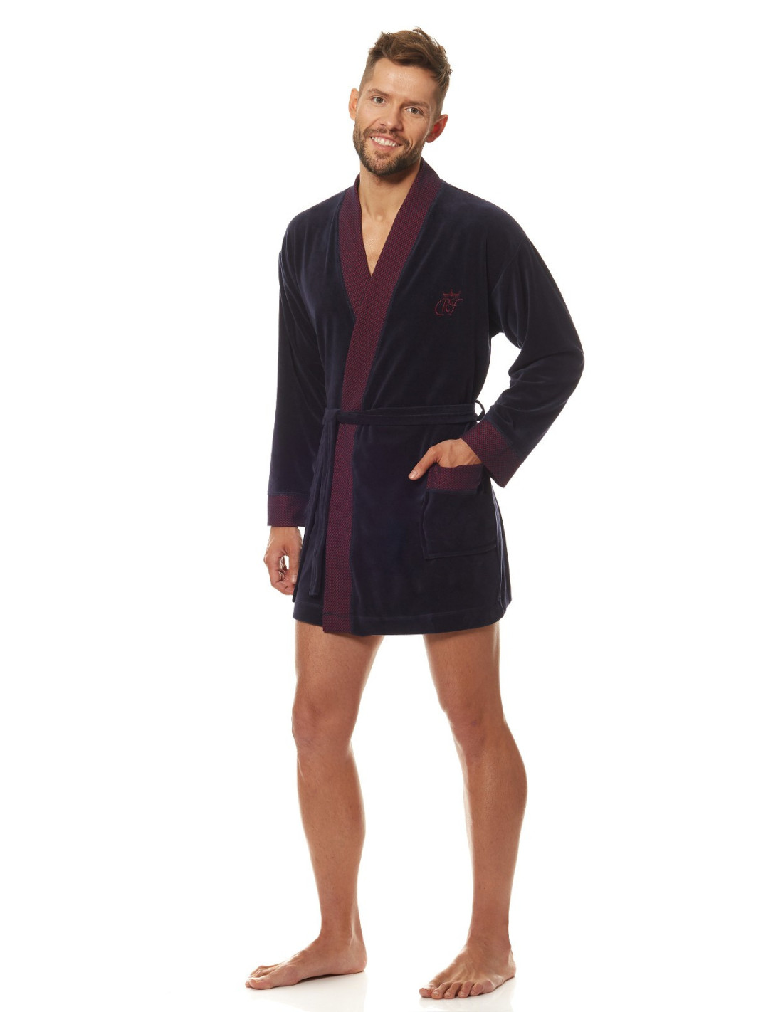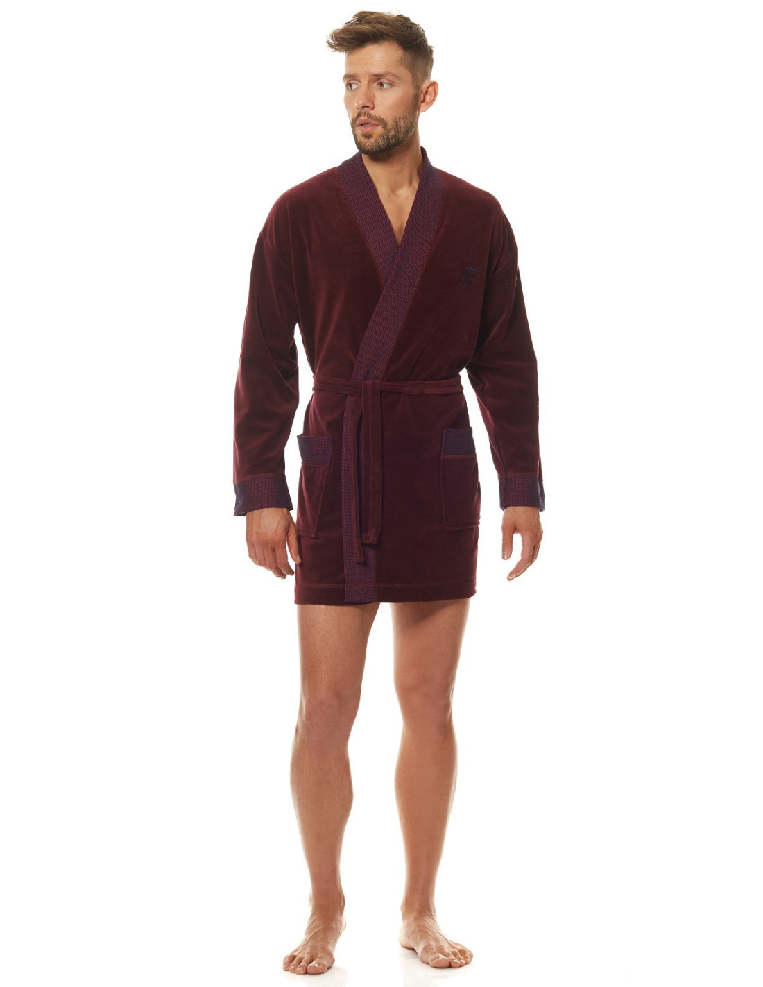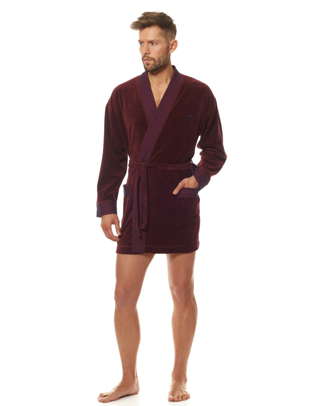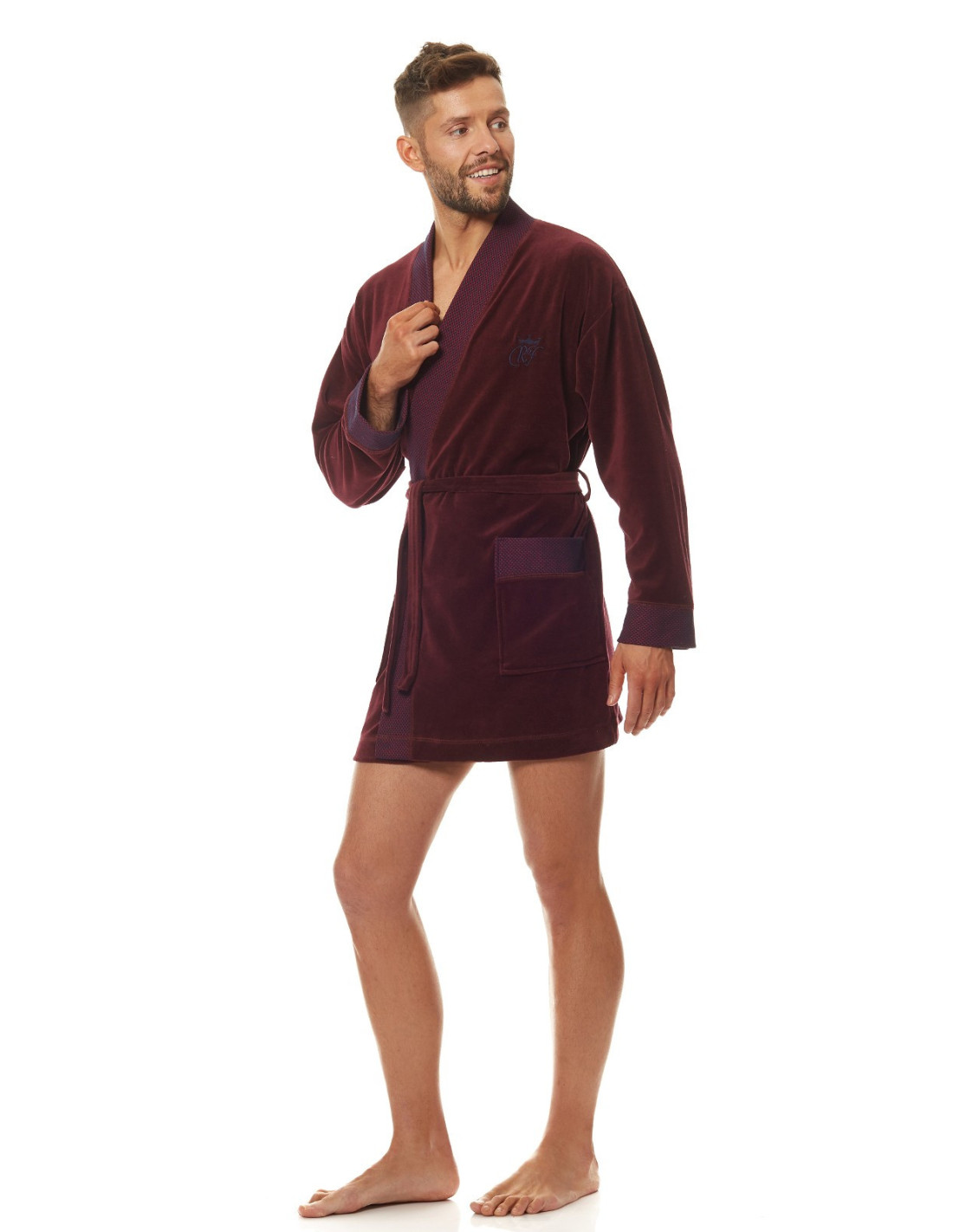 Welurowy szlafrok męski, krótki