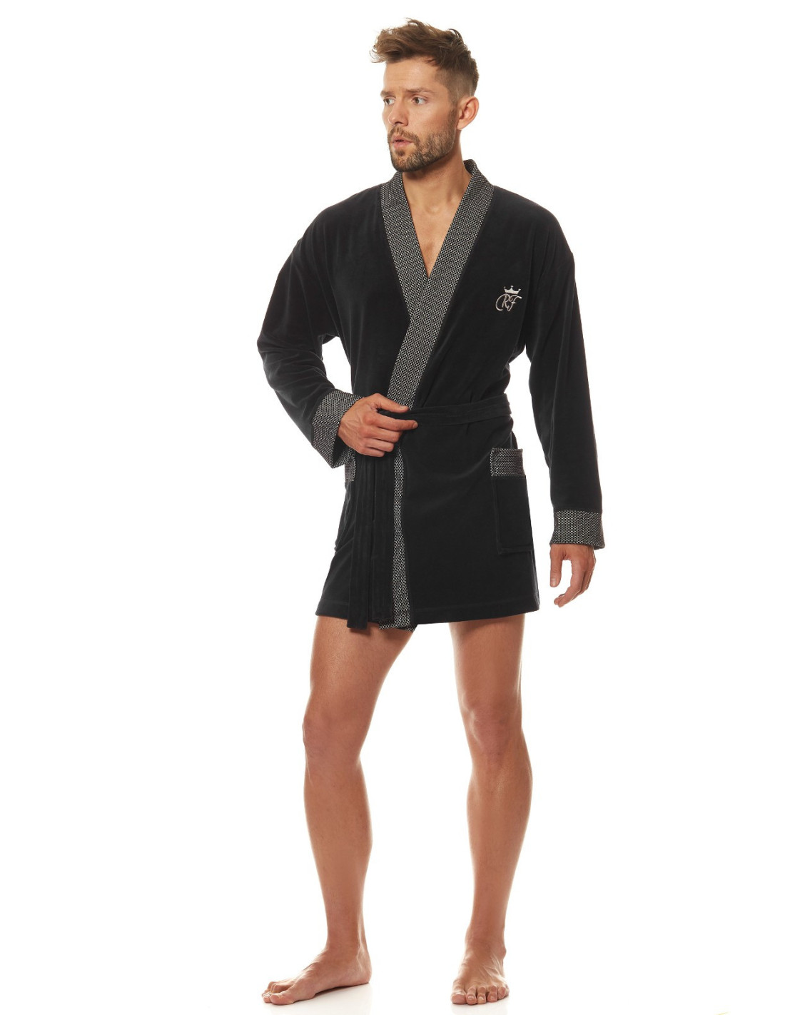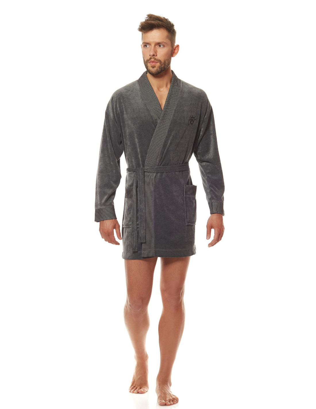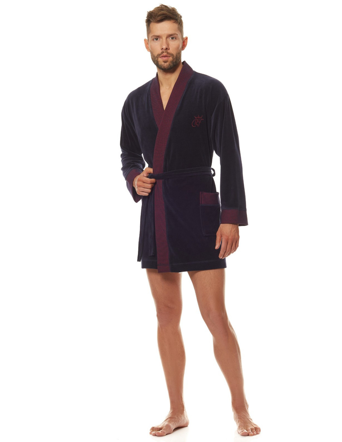 Welurowy szlafrok męski, krótki