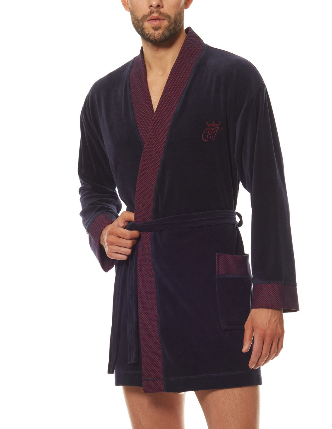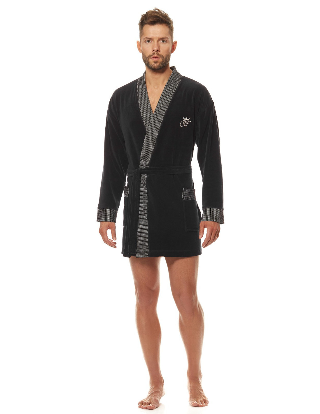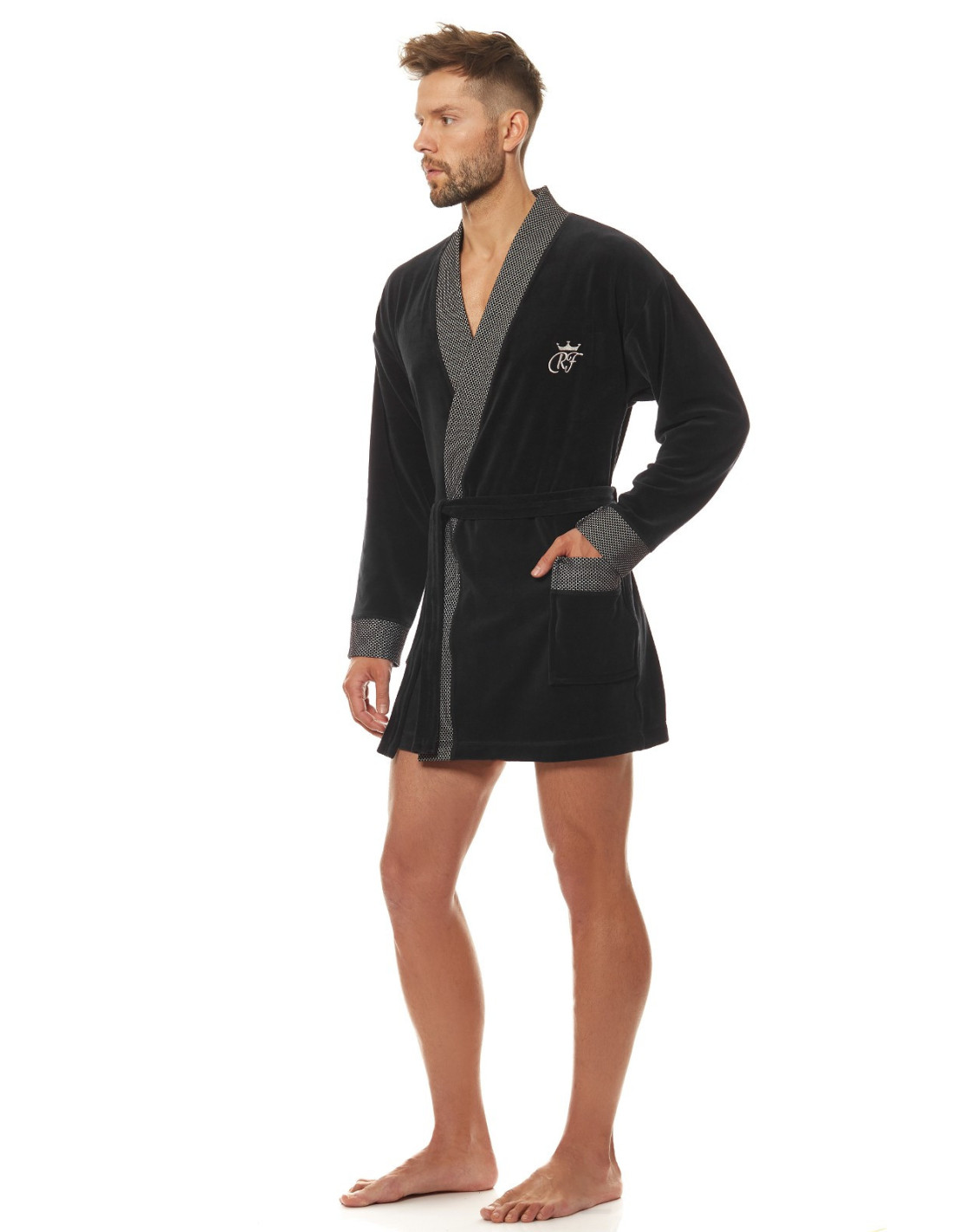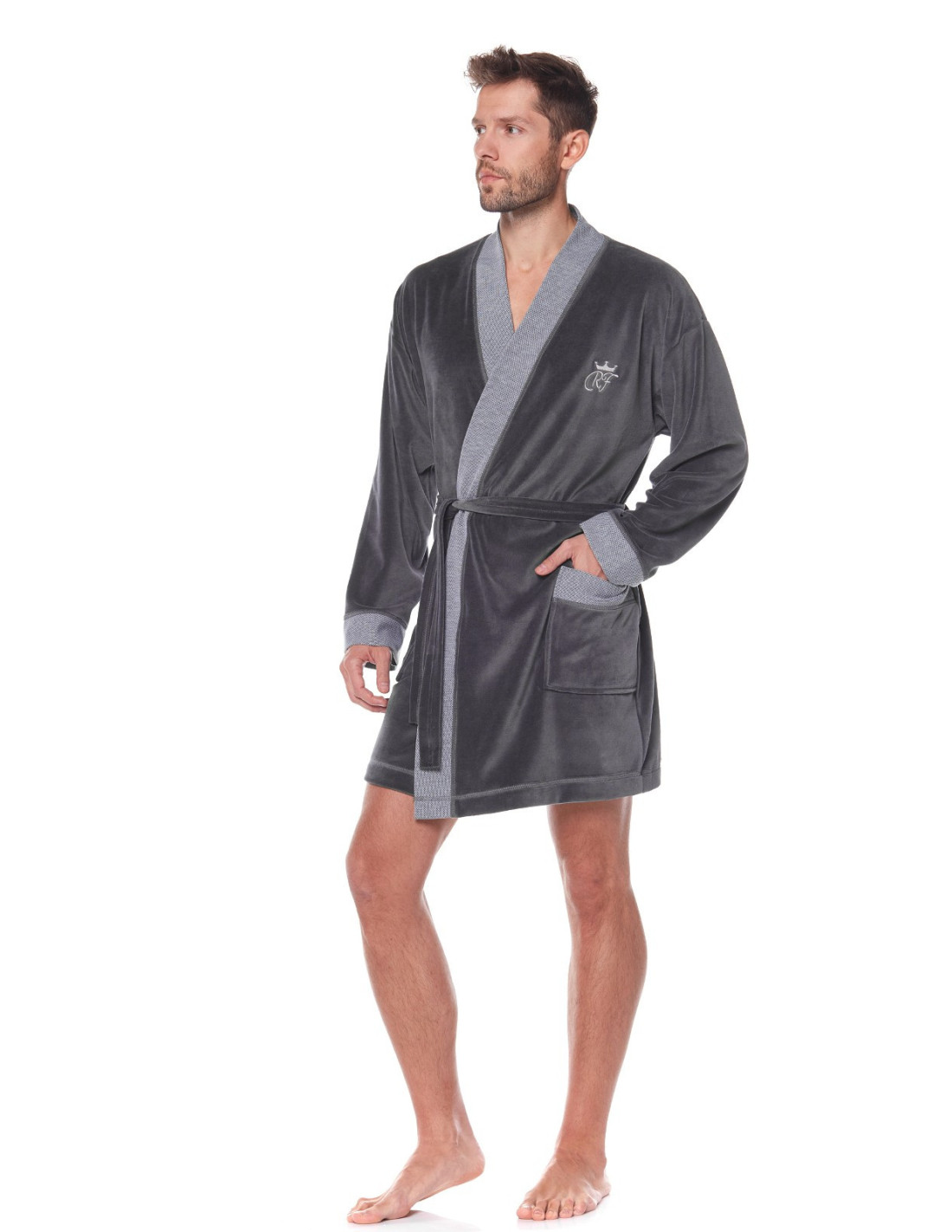 Welurowy szlafrok męski, krótki