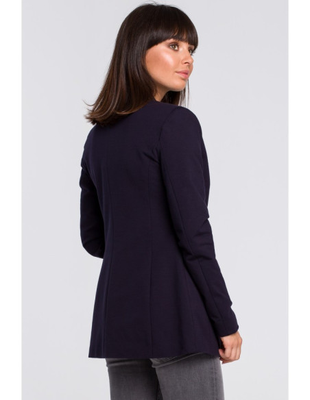 B103 Trikotažinis plius dydžio švarkas be užsegimo - tamsiai mėlynas