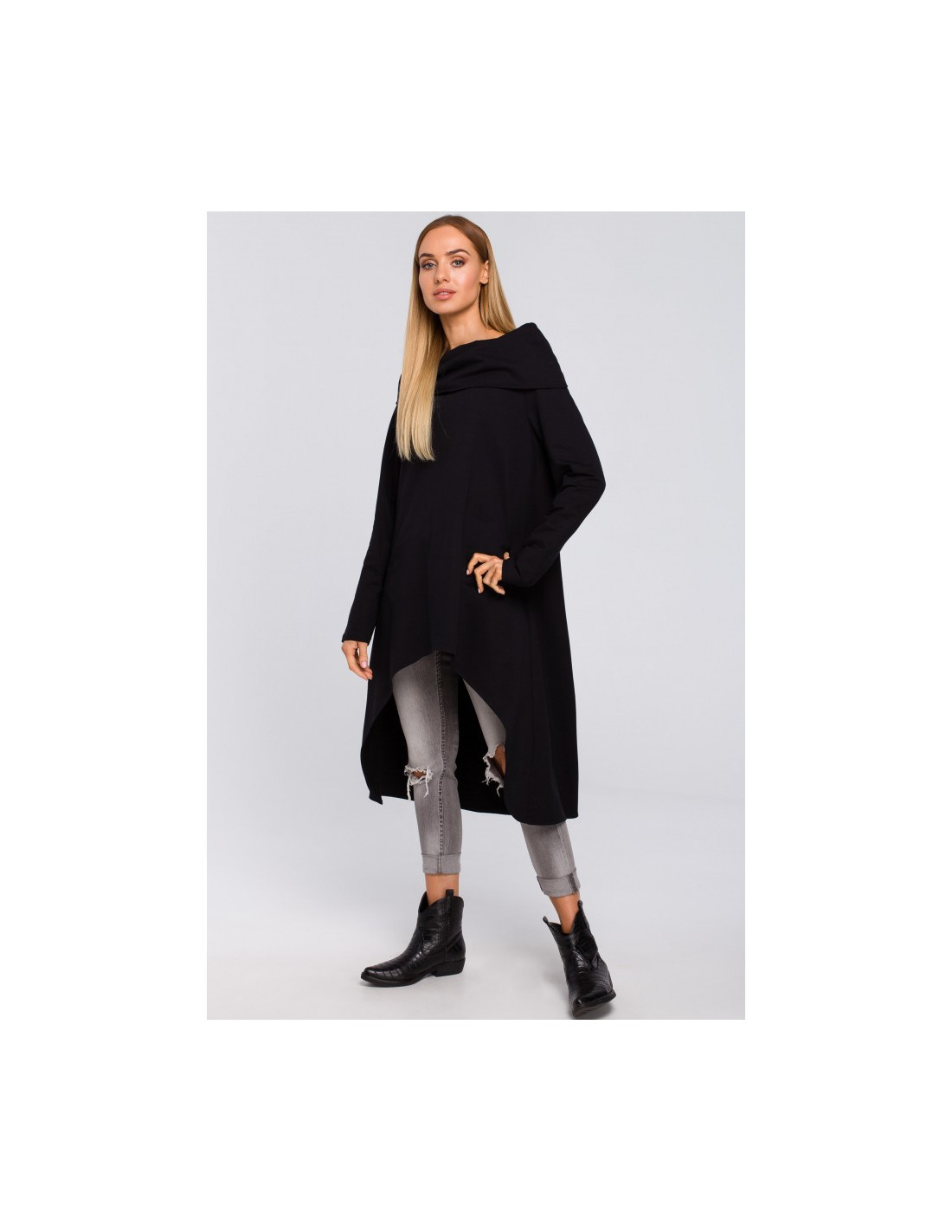 Džinsų ir leginsų gerbėjams patiks ši itin praktiška tunika su ilgesne nugara ir plačia pečius siekiančia pamušalu apykakle!