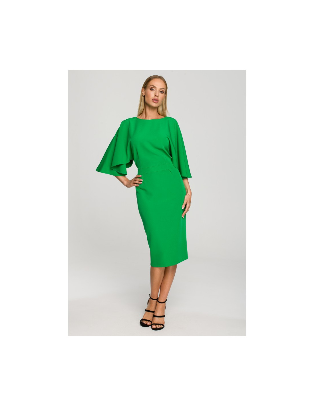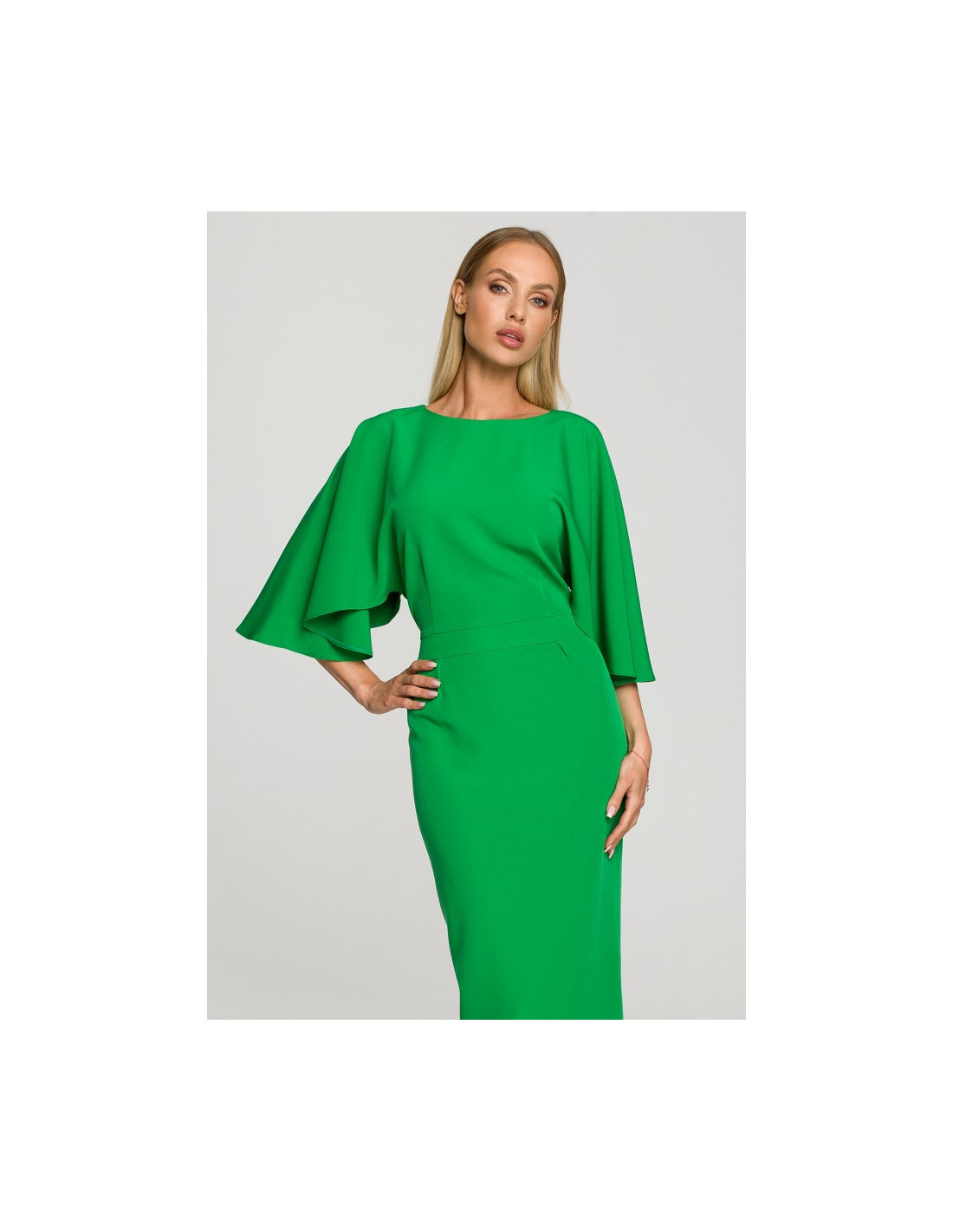 95% polyester 5% elastanase When you need a fancy, special occasion dress this gorgeous pencil sheath comes with help. With a pencil-cut, below knee length skirt and relaxed top with wide kimo sleeves it is bound to make eyes turn. PRODUCT INFORMATION: woven fabric cocktail dress with a pencil type skirt and relaxed fit top three-quarter batwing sleeves bateau neckline decorative stitching in the waist hidden side zip below knee length kick split in the back unlined our model is 171 cm tall and wears size S
