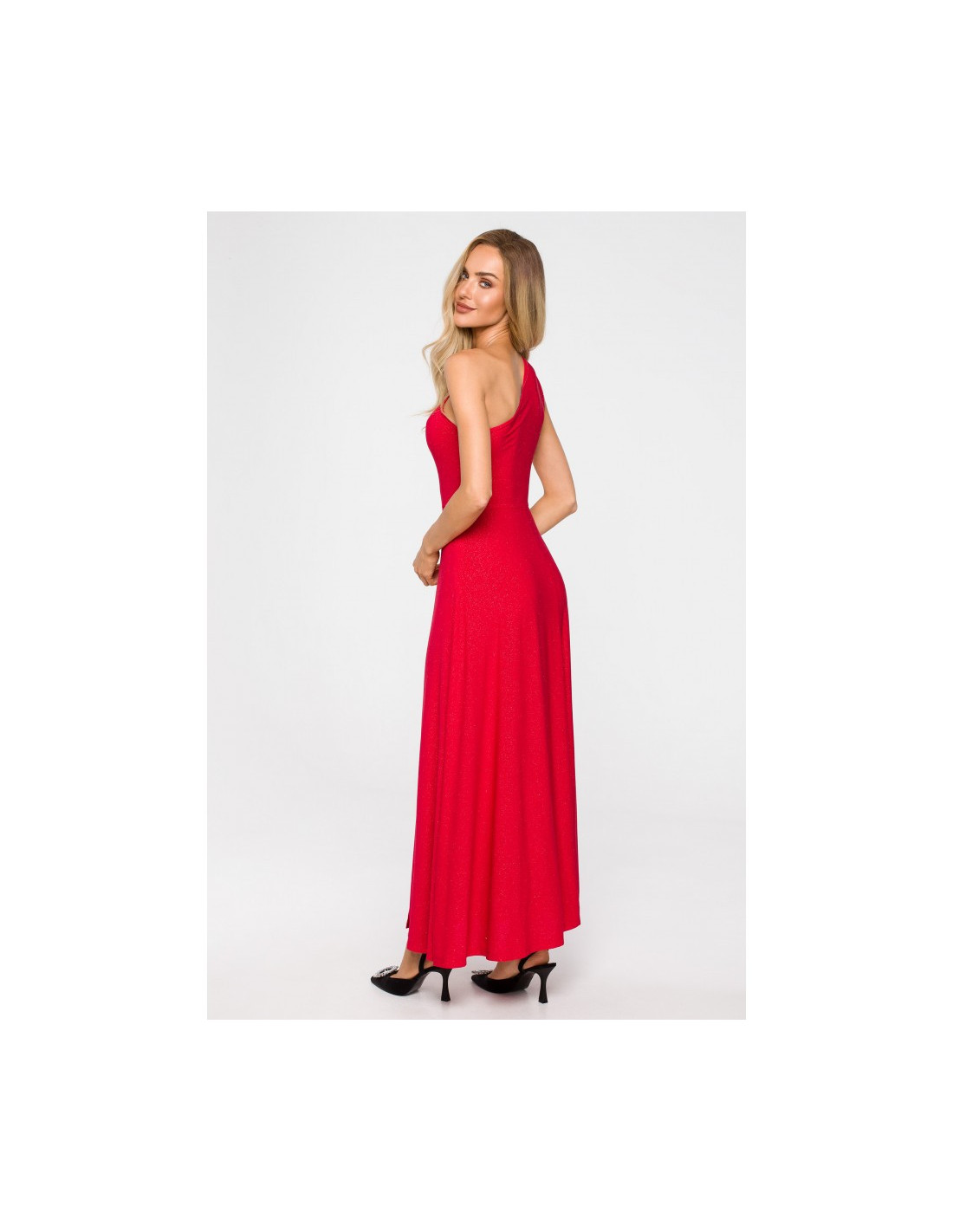 maxi length dress with one shoulder detail