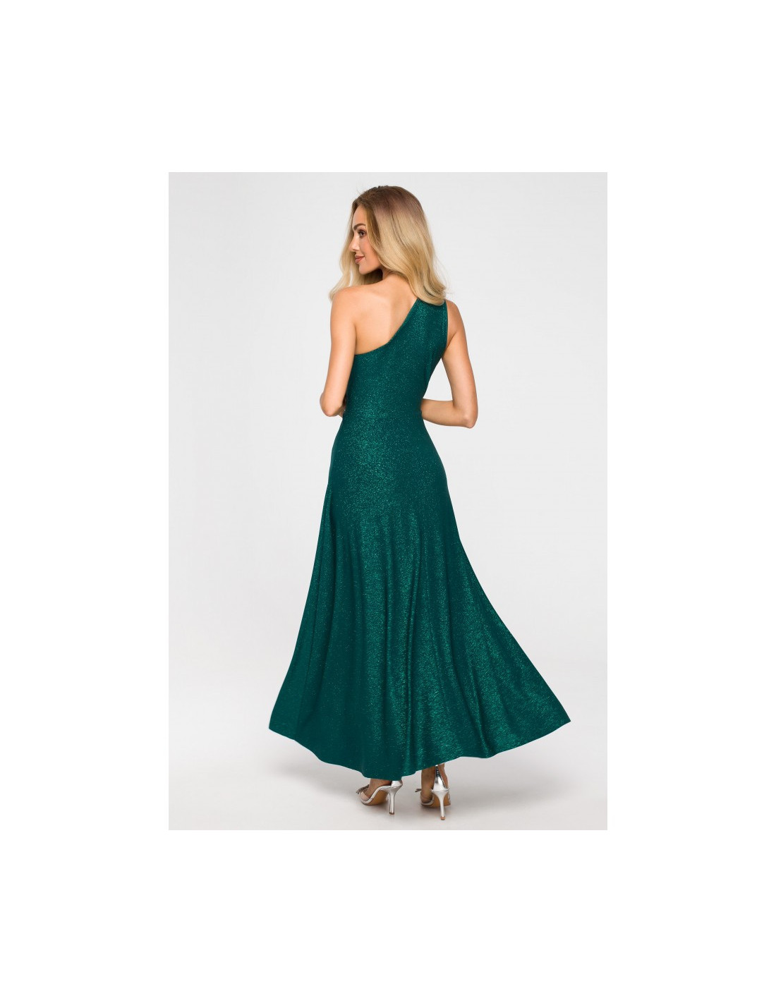 Elegant and chic. This dress will make any occasion special. Long flared cut with high leg split and fitted one-shoulder top with a sexy cut-out detail.