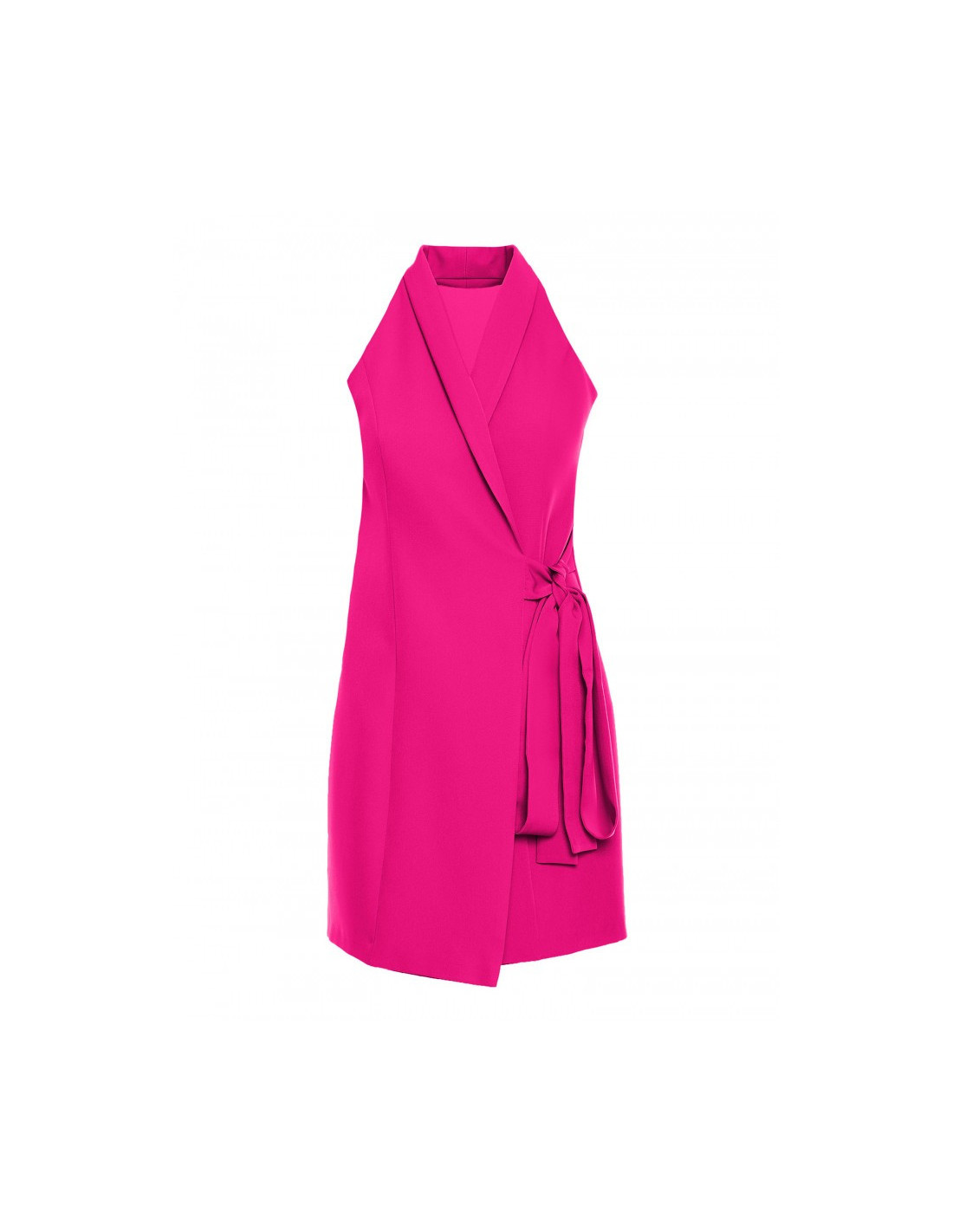 95% polyester 5% elastanase Wrap halter neck dress enhanced with a shawl collar. Tie it around the waist or on the side. PRODUCT INFORMATION: woven fabric blazer mini dress  sleeveless wrap design tied on the side or around waist unlined our model is 171 cm tall and wears size S