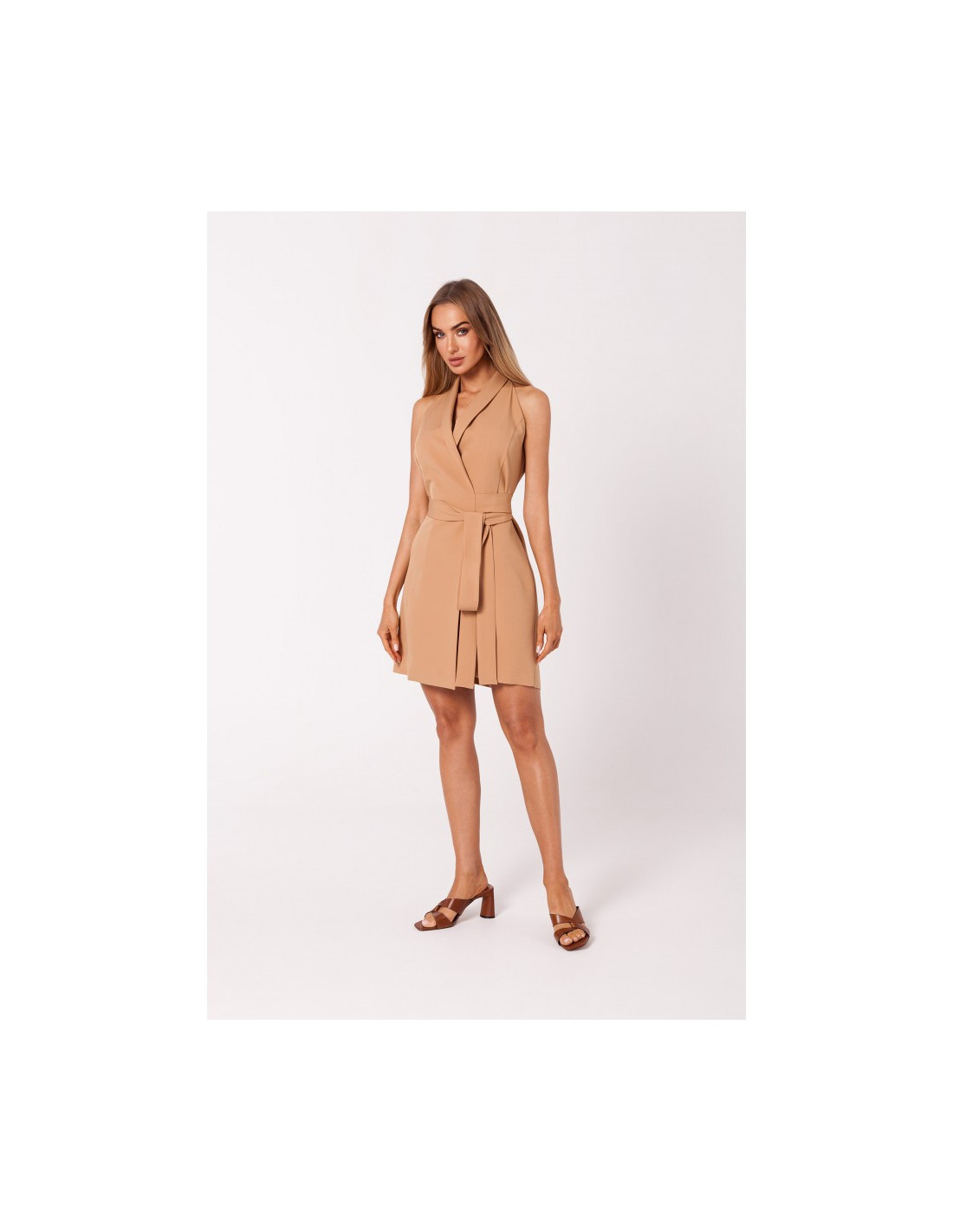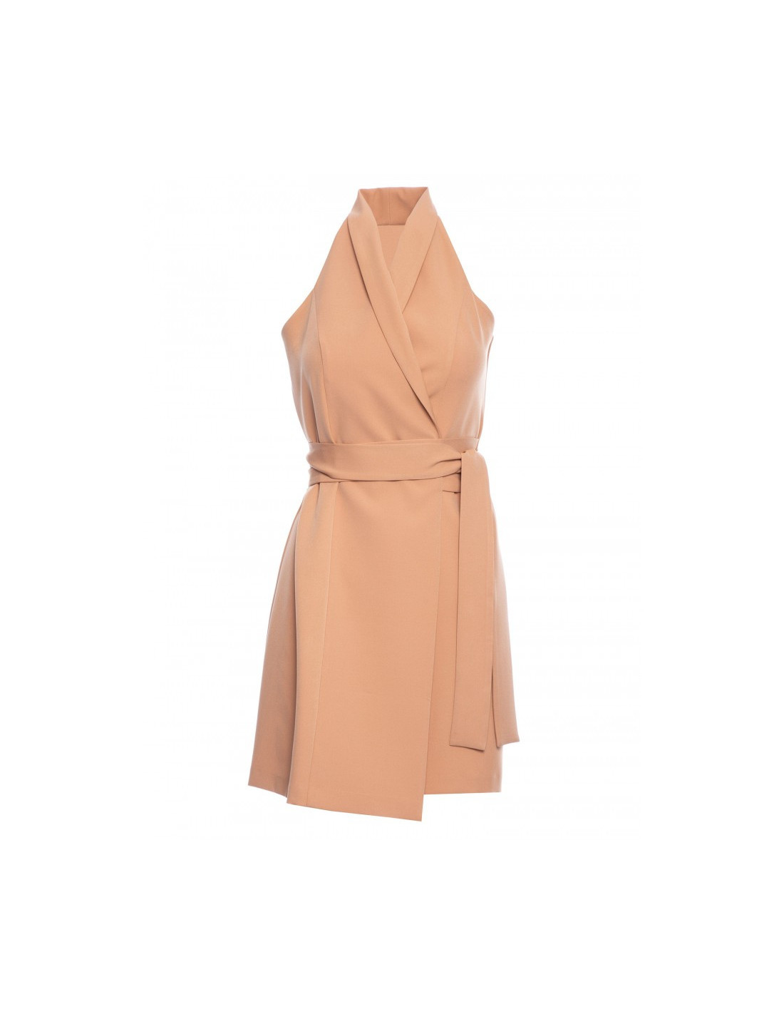 95% polyester 5% elastanase Wrap halter neck dress enhanced with a shawl collar. Tie it around the waist or on the side. PRODUCT INFORMATION: woven fabric blazer mini dress  sleeveless wrap design tied on the side or around waist unlined our model is 171 cm tall and wears size S