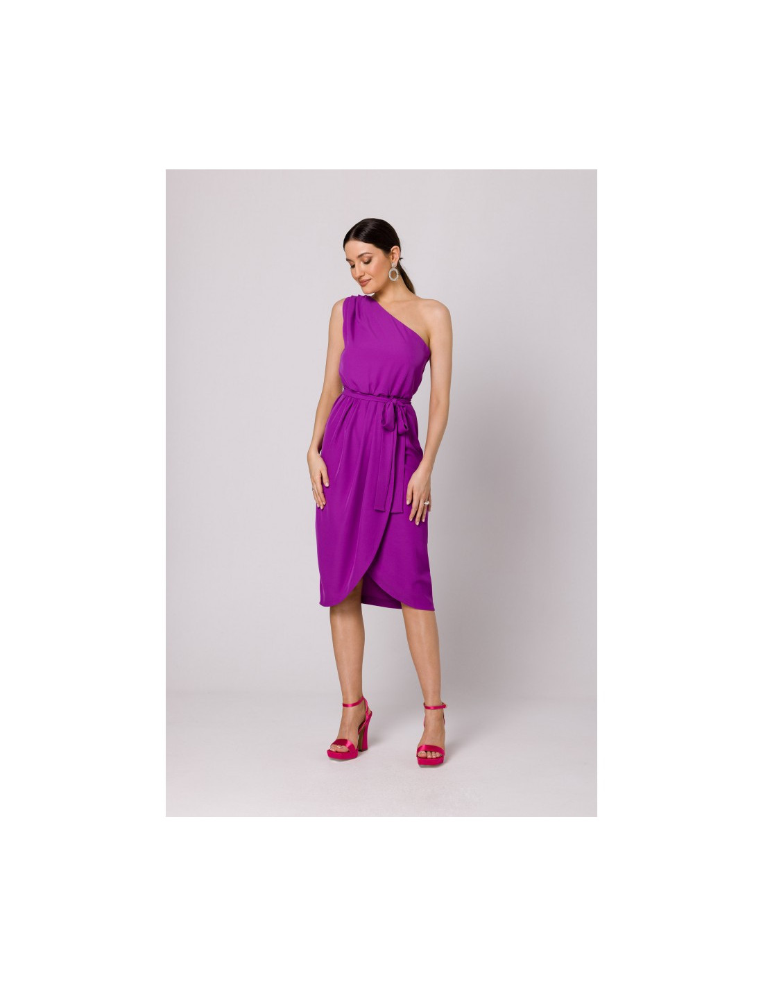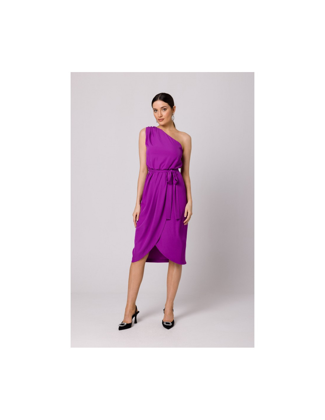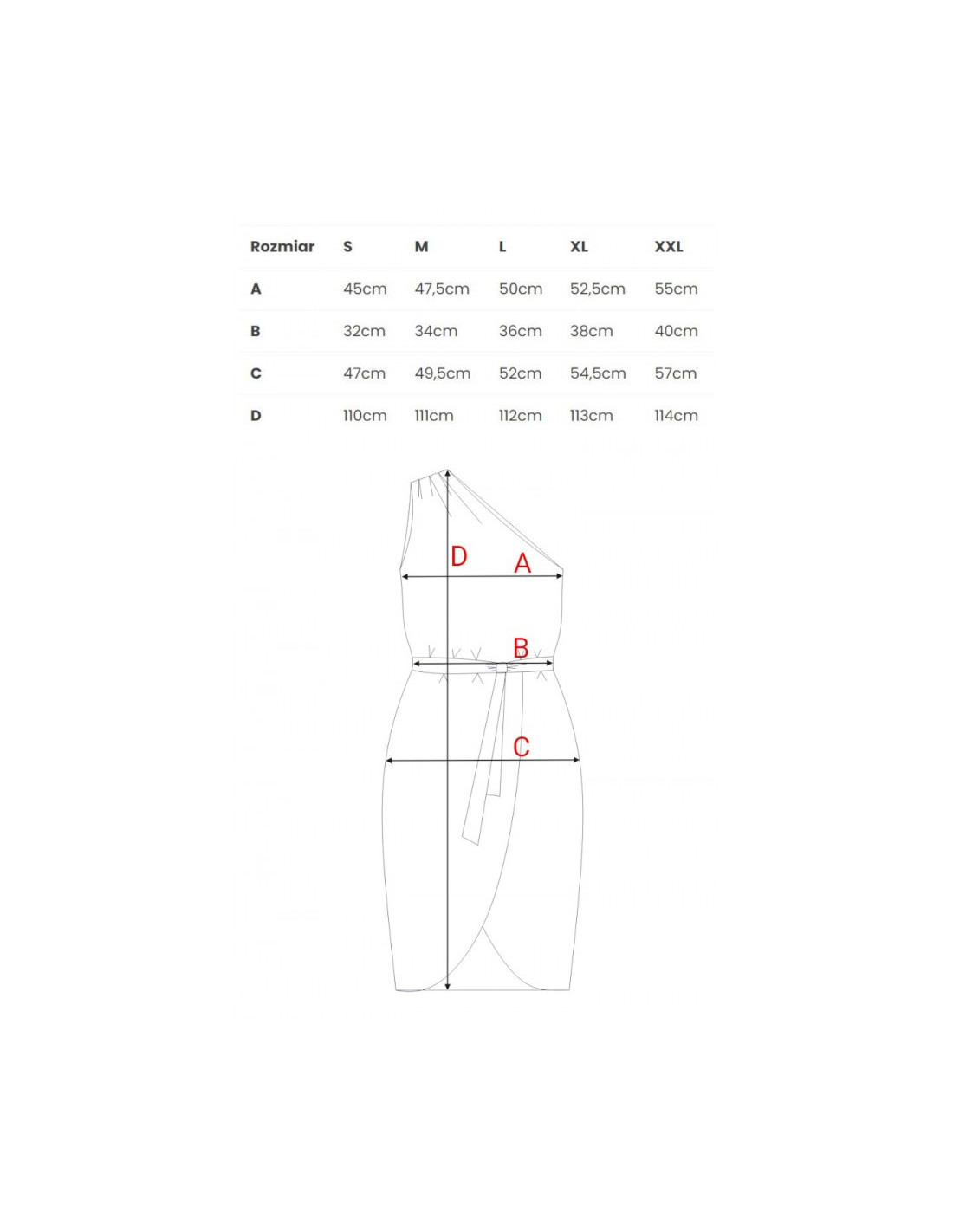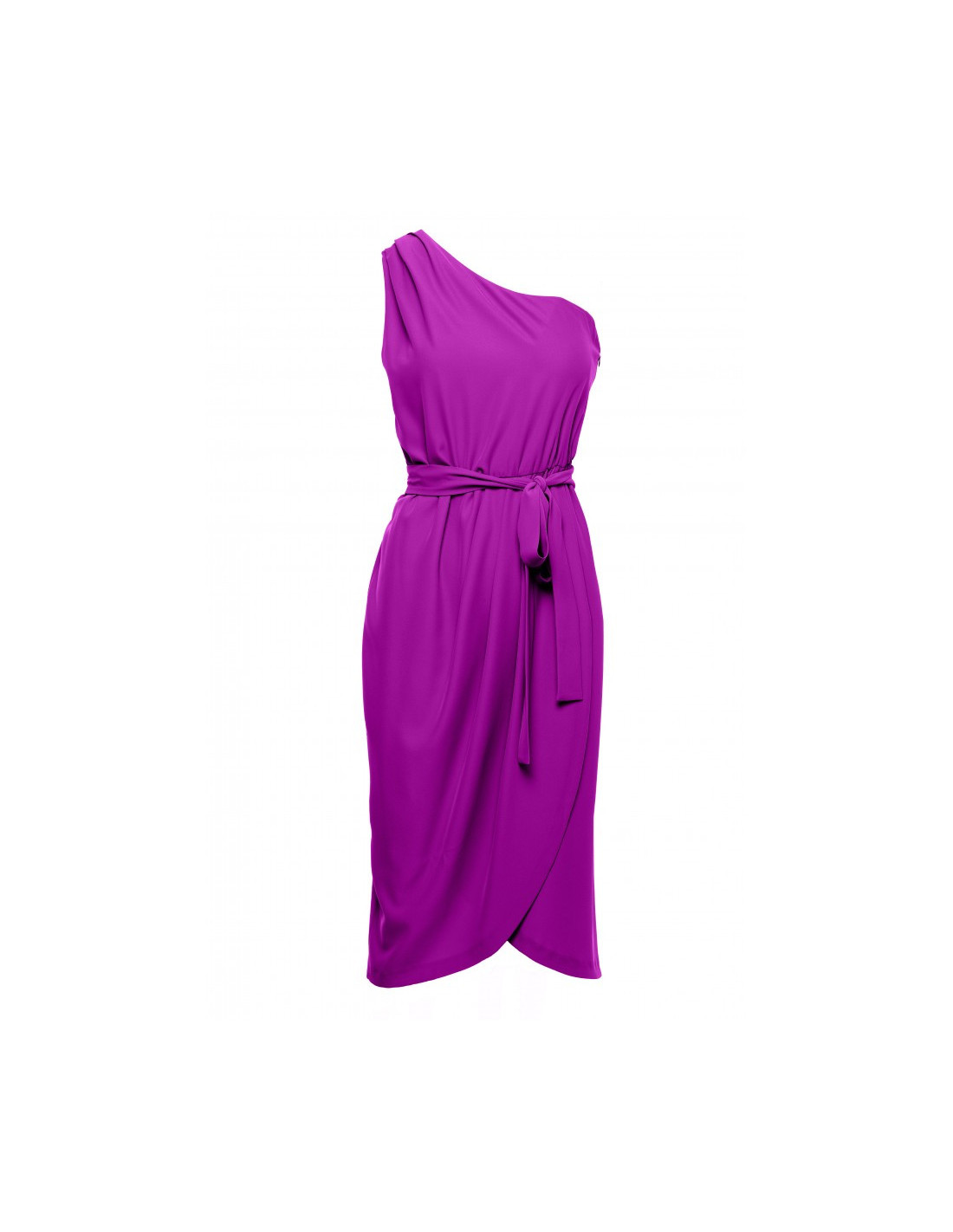 95% polyester 5% elastanase 100% polyester This lovely one shoulder dress featuring a wrap design with a tie detail and decorative ruching will elevate your occasion look. PRODUCT DETAILS:      woven fabric  one shoulder asymmetrical neckline elasticated waist tied in the waist partially lined below knee length hidden side zip Our model is 175 cm tall and wears size S