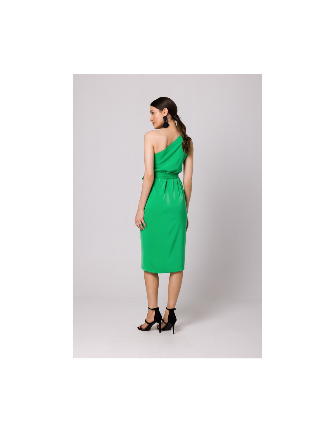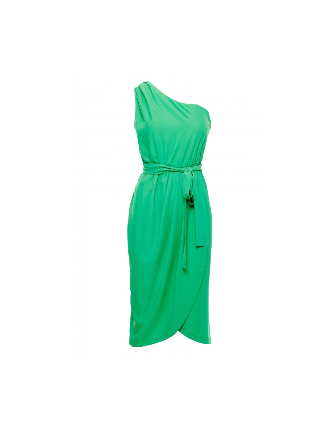 95% polyester 5% elastanase 100% polyester This lovely one shoulder dress featuring a wrap design with a tie detail and decorative ruching will elevate your occasion look. PRODUCT DETAILS:      woven fabric  one shoulder asymmetrical neckline elasticated waist tied in the waist partially lined below knee length hidden side zip Our model is 175 cm tall and wears size S