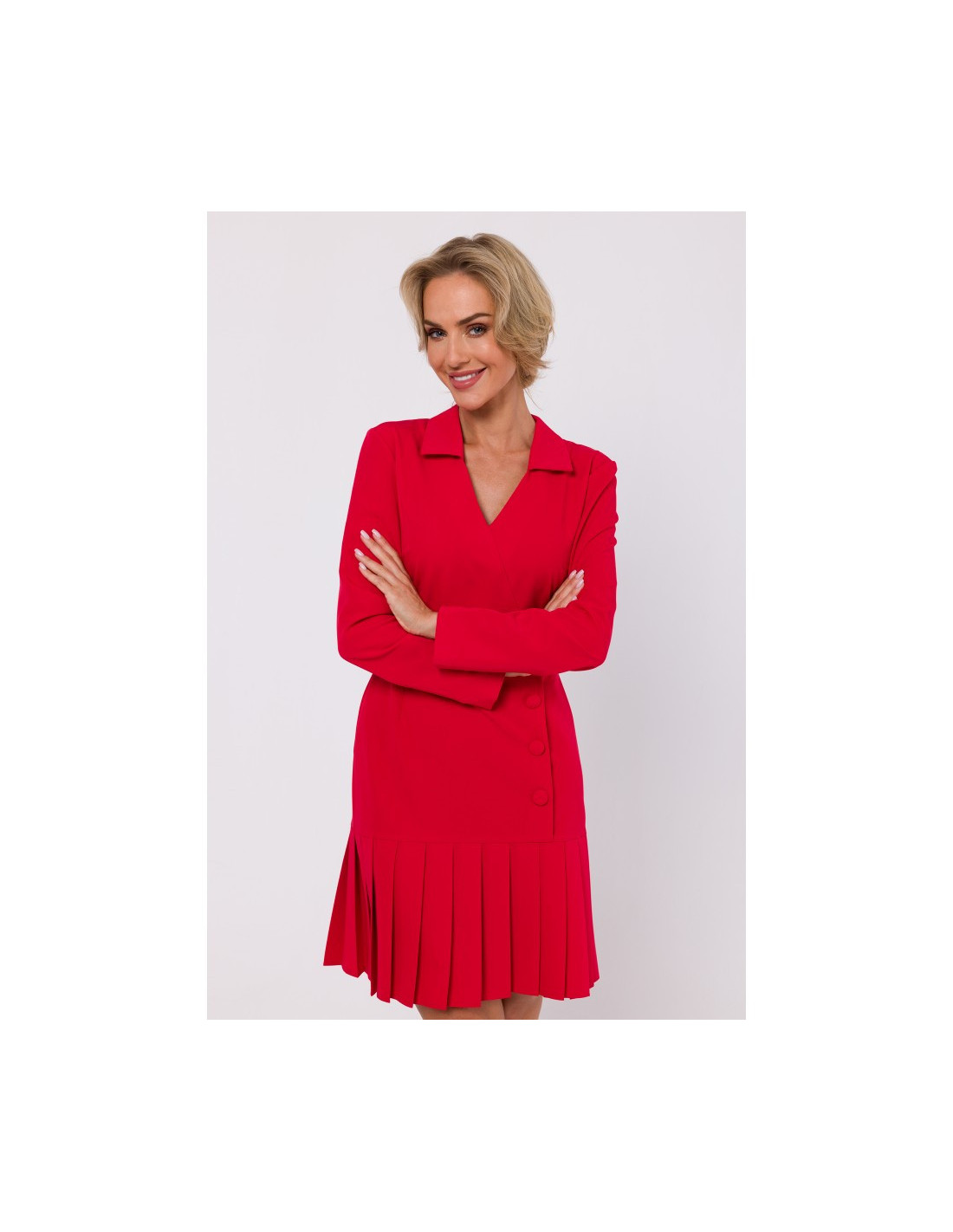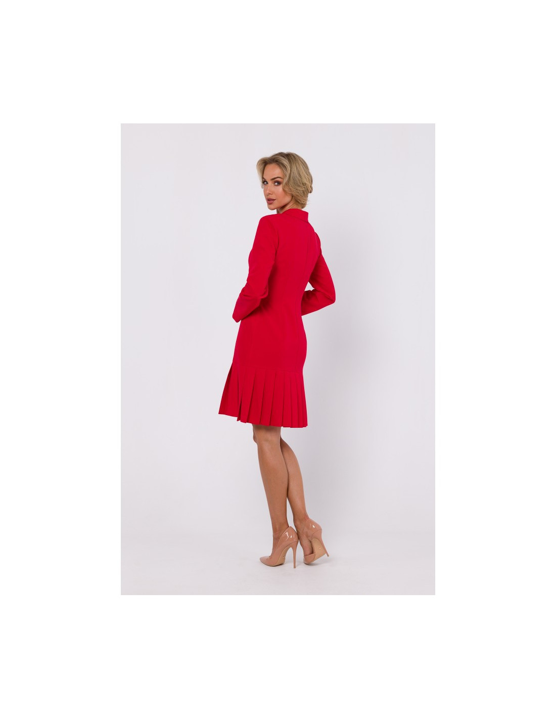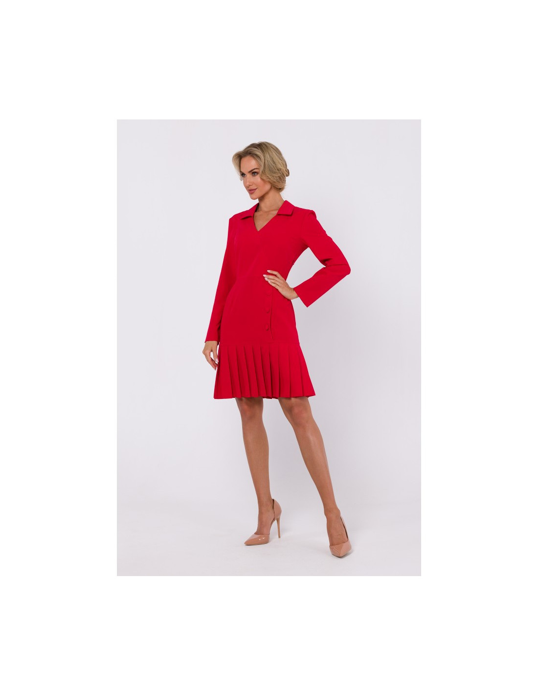 M752 Dress with pleated bottom hem - red