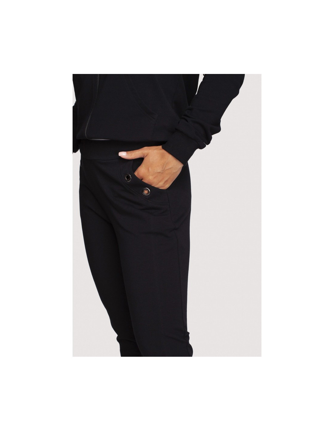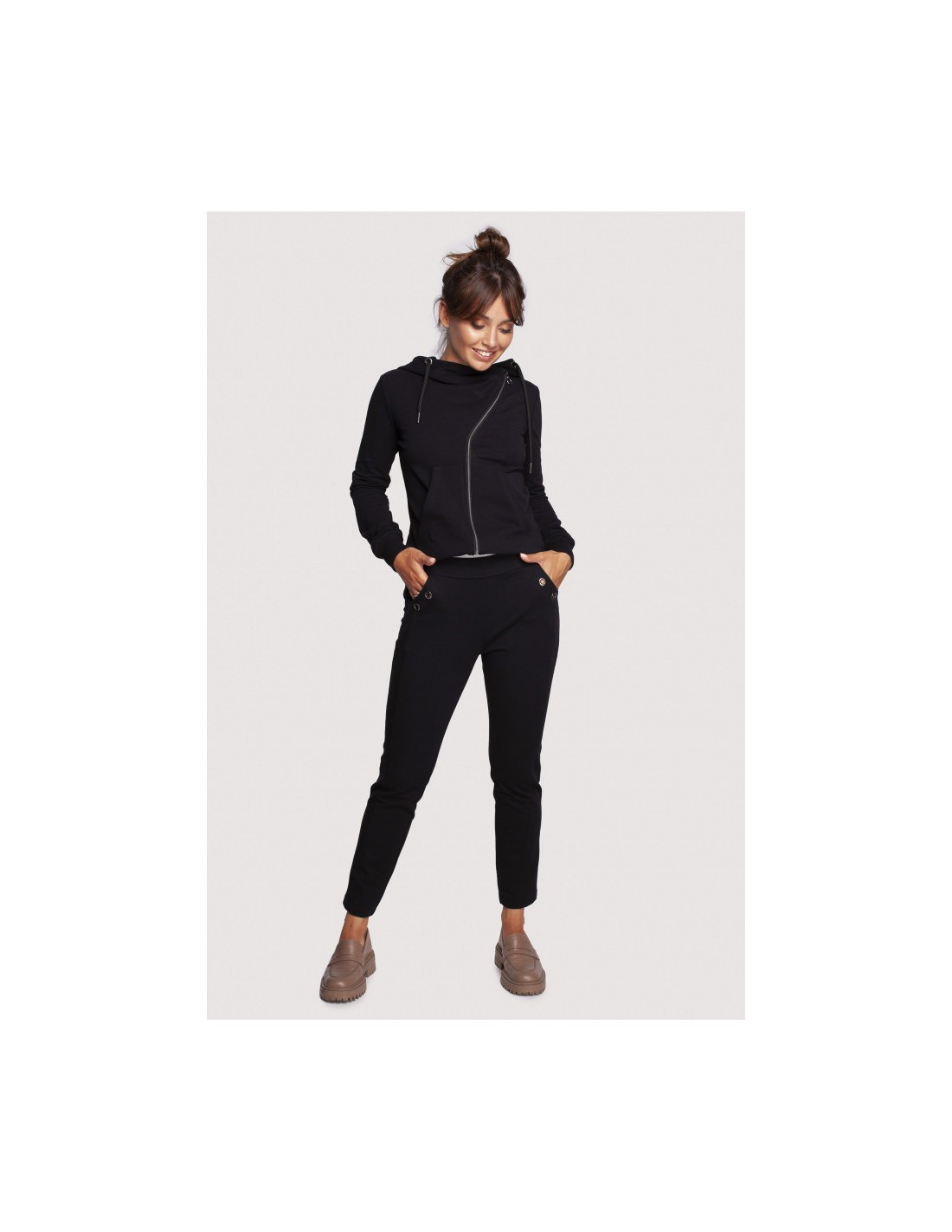 90% cotton 10% elastanase Versatile trousers with a straight leg design embellished with front seams and decorative eyelets on the pockets. PRODUCT DETAILS:      knit fabric trousers with decorative stitching in the front slim legs partially elasticated waistline side pockets with decorative metal eyelets our model is 172 cm tall and wears size S