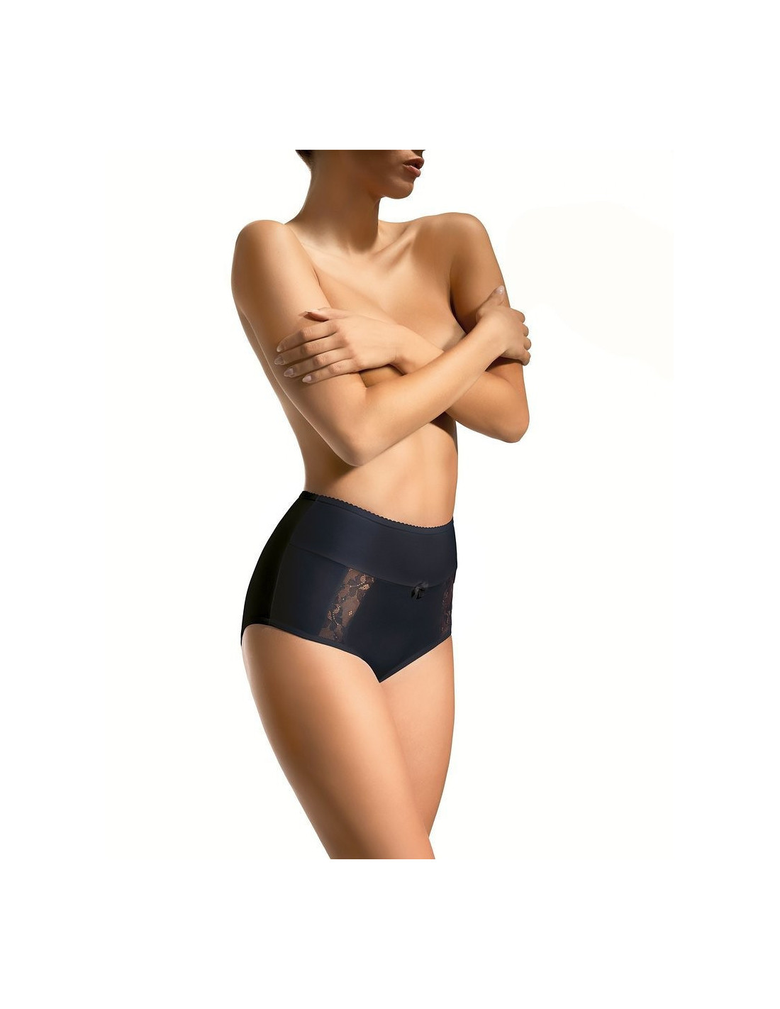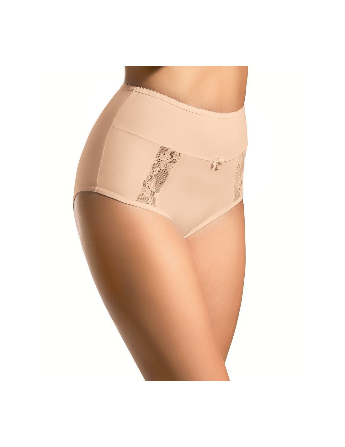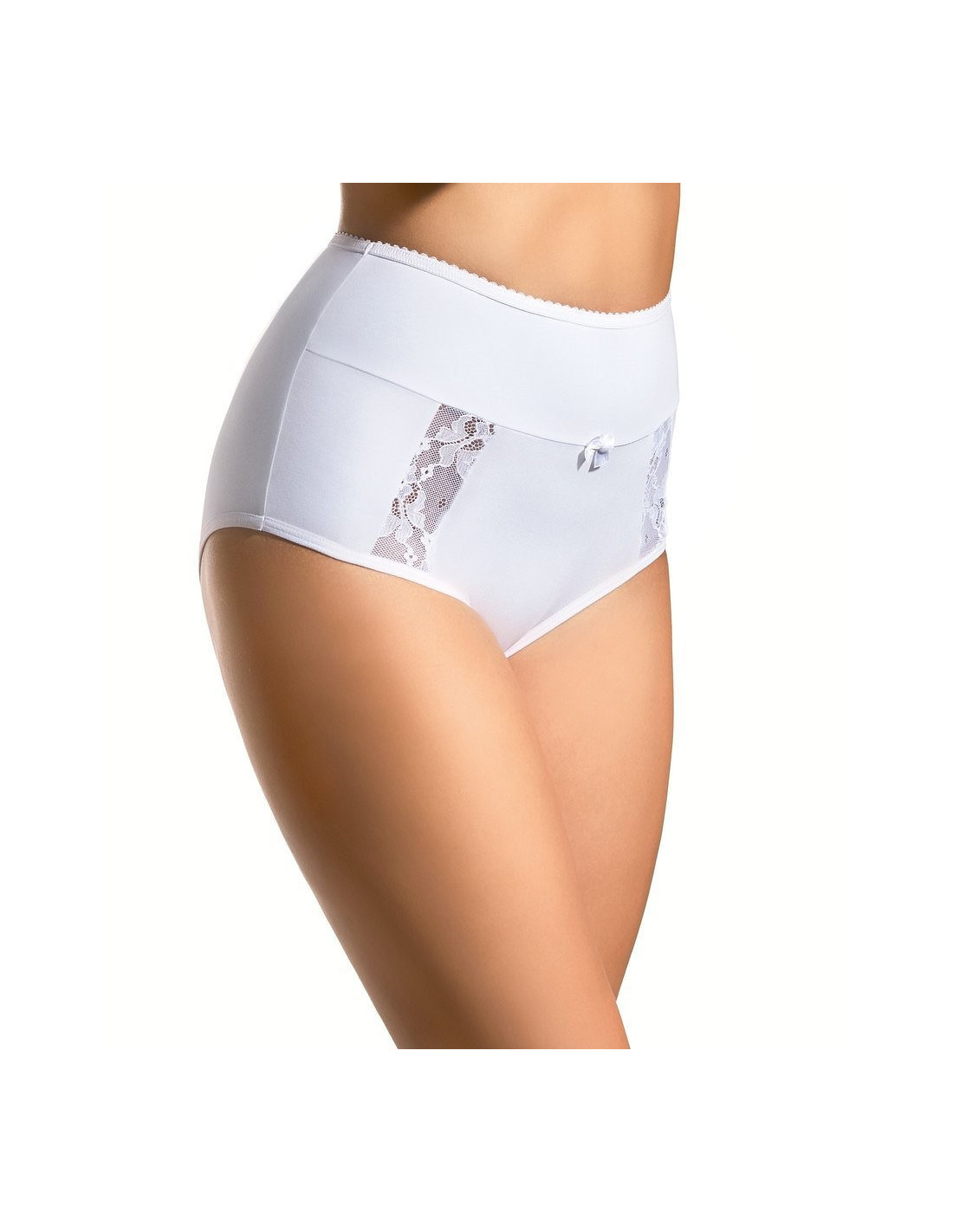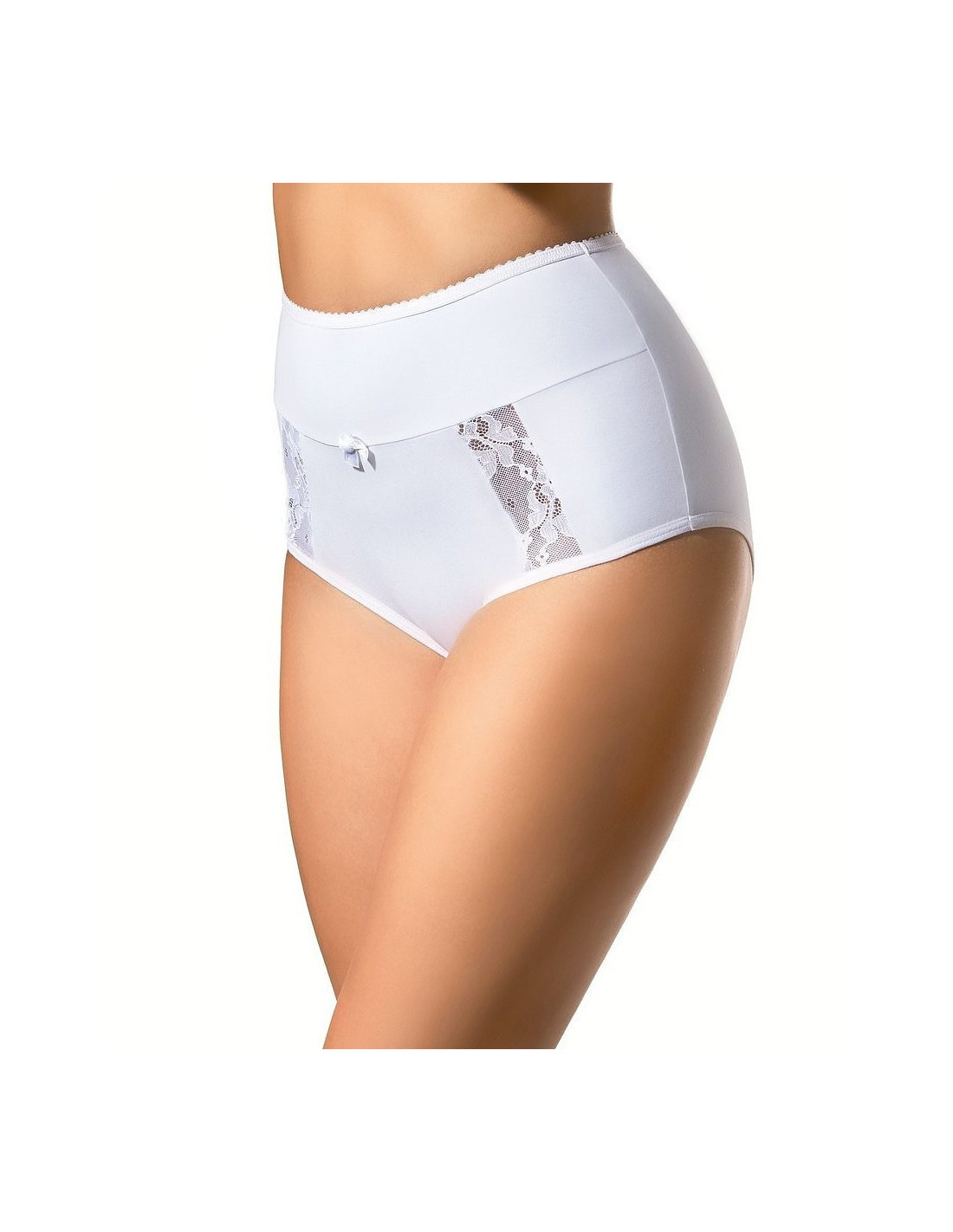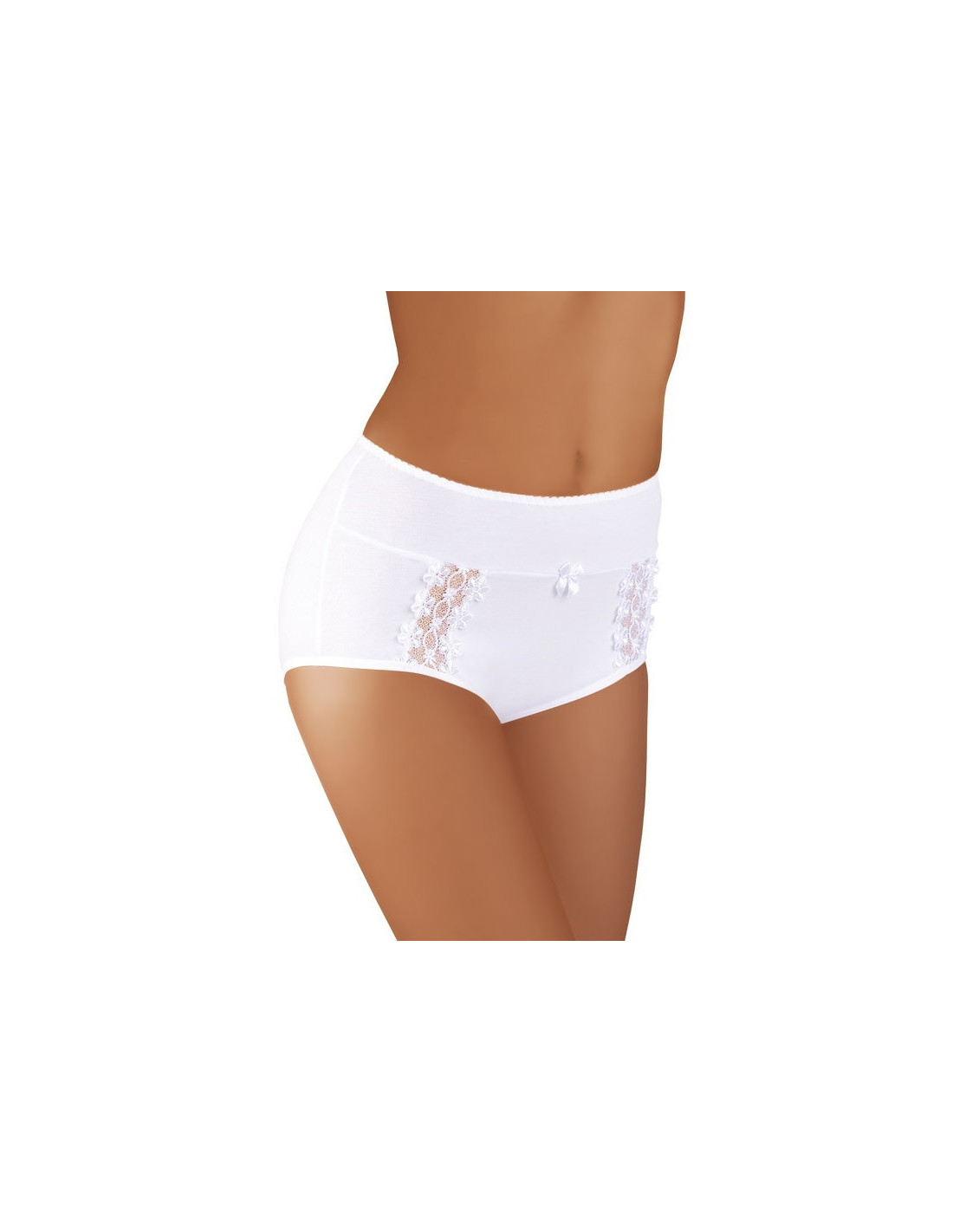 Medvilninės moteriškos kelnaitės - su lycra - padidintos, aukštu liemeniu - dekoruotos subtiliais ažūriniais nėrinių intarpais