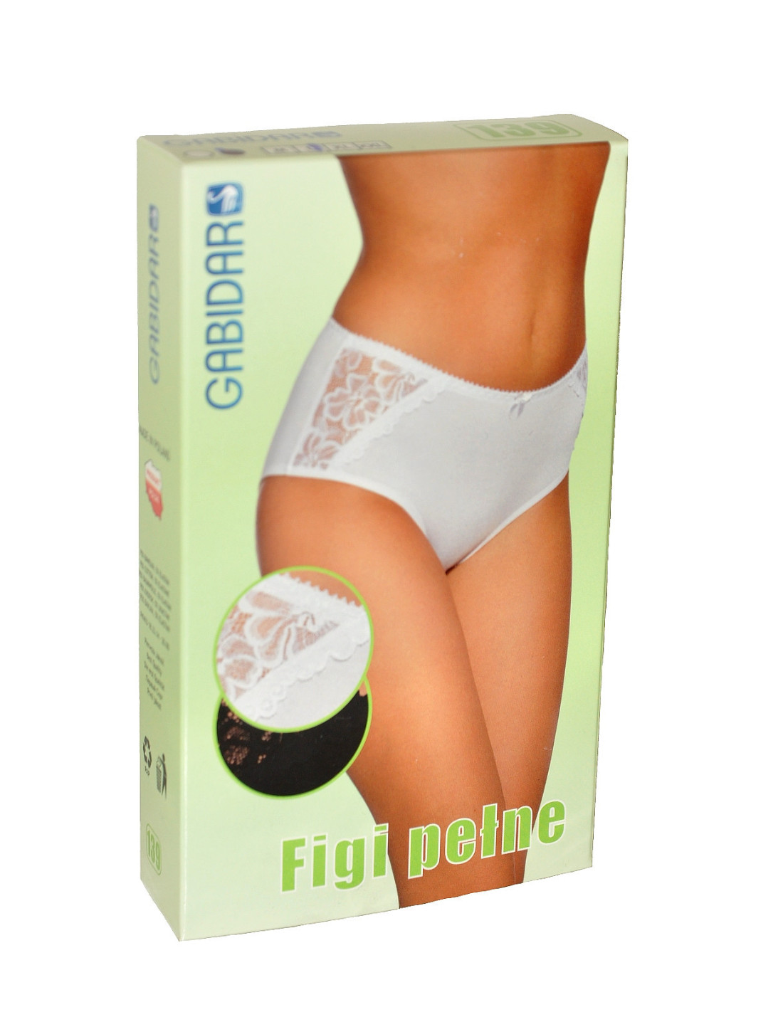 Moteriškos kelnaitės - pilno kirpimo - pagamintos iš medvilnės su elastanu - šonai su nėrinių intarpais