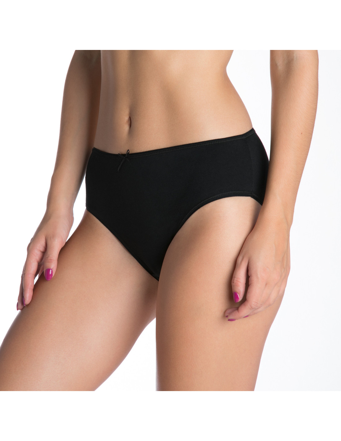 Moteriškos kelnaitės - pagamintos iš natūralios medvilnės - plokščias elastingas juosmuo su lankeliu - aukštas pakilimas, ties klubais - supakuotos į plastikinį maišelį, kuriame yra trys dalys