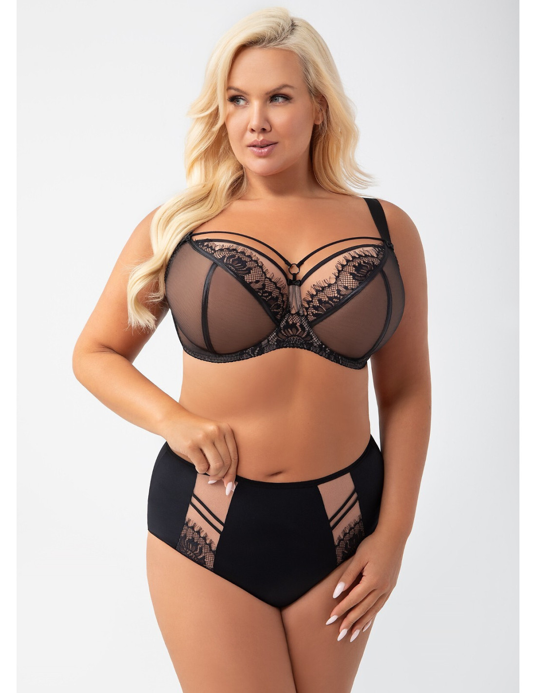 - dekoruotos permatomo tinklelio intarpais su įspūdingu gėlių nėrinių raštu