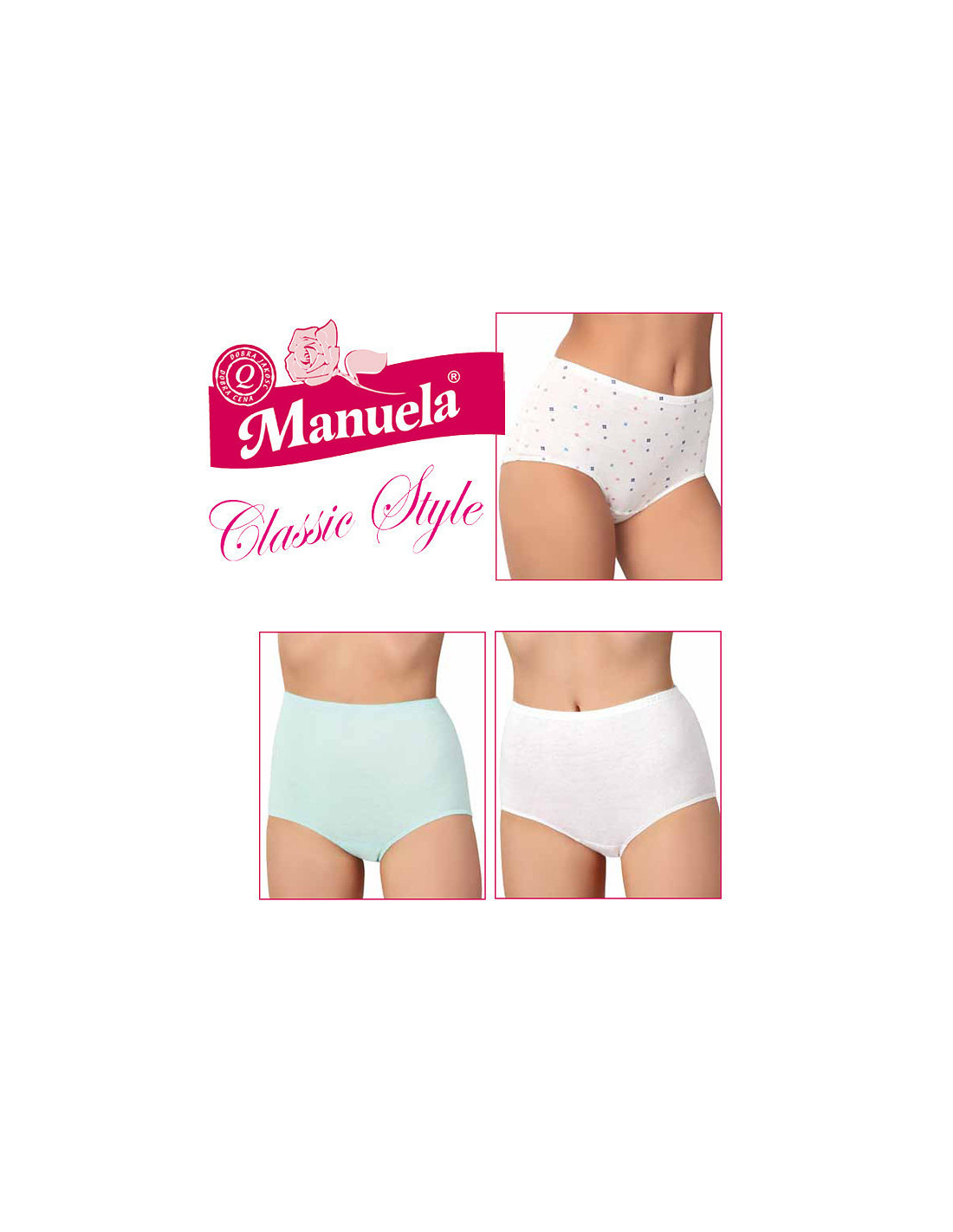 Patogios ir patogios kelnaitės moterims - pagamintos iš aukštos kokybės medvilnės - aukštas liemuo - supakuotos po šešis vienetus plastikiniame maišelyje: - mišrios (rožinės, abrikosinės, geltonos, mėlynos, celadono, kreminės) - baltos su gėlėmis - baltos spalvos - juoda