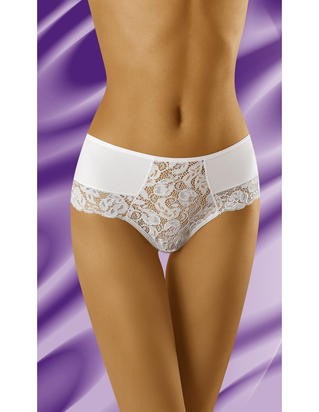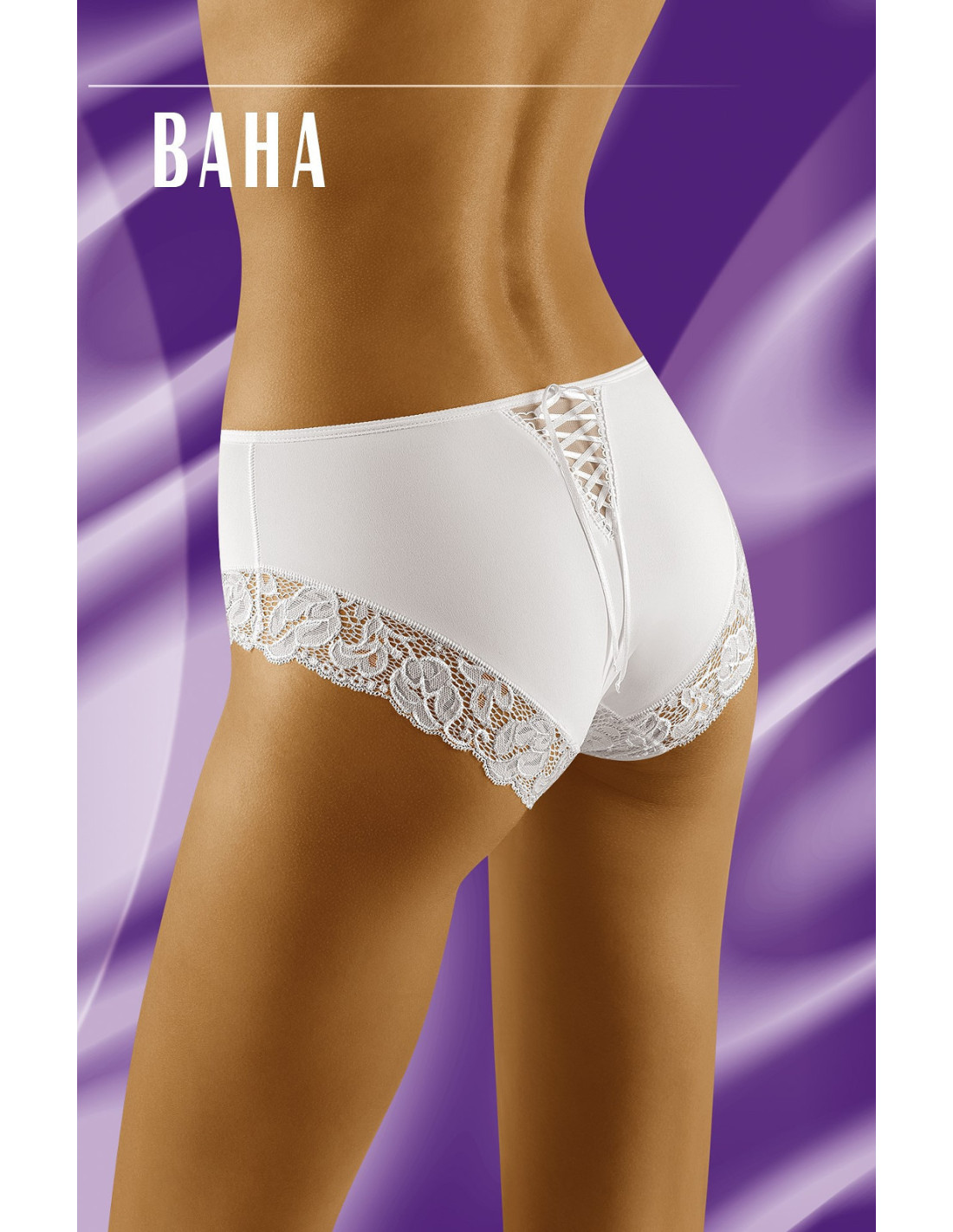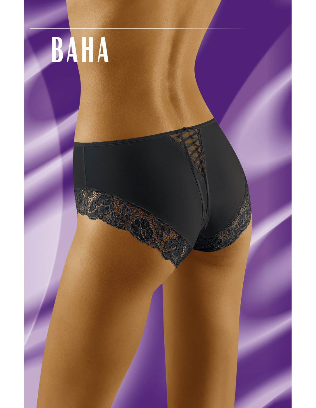 Klasikinio kirpimo moteriškos kelnaitės - pagamintos iš švelnaus mikropluošto ir gėlių rašto nėrinių - nugaros pusėje veiksmingai surišta atlasine juostele