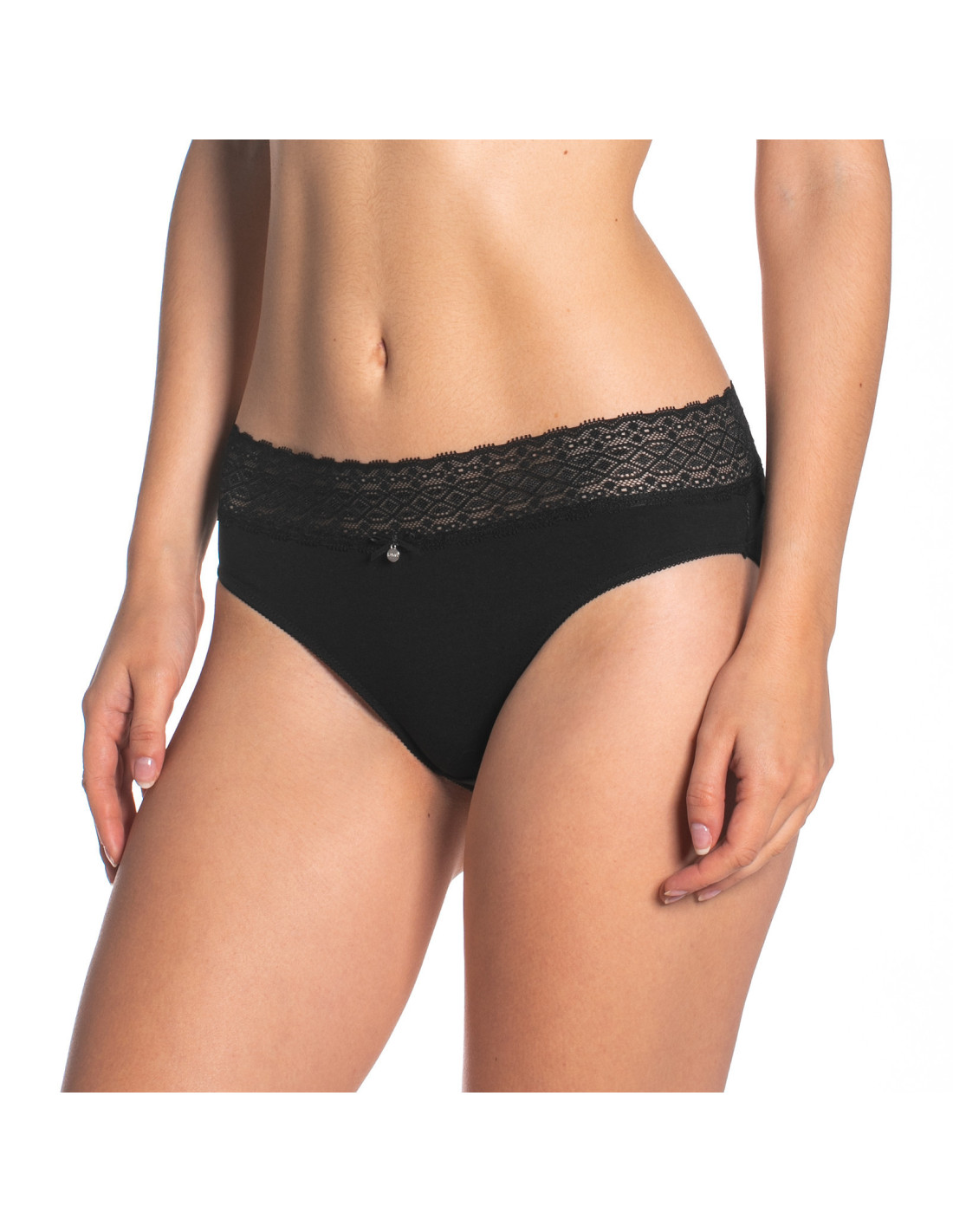 Moteriškos kelnaitės - pagamintos iš tvirtos medvilnės - liemuo užbaigtas ažūriniais nėriniais - supakuotos į dėžutę po dvejas