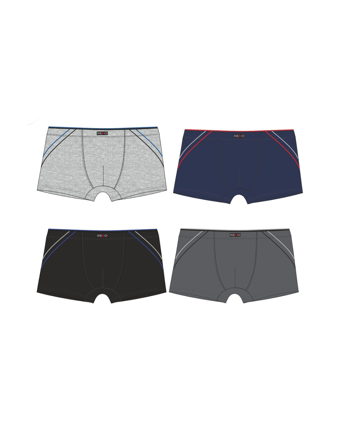 Vyriški medvilniniai boksininkų šortai - vienspalviai, paprasti arba su nedideliu raštu - vidinė arba išorinė guma - puikiai priglunda prie kūno - patogūs dėvėti - galimos spalvos: juoda su spalvotomis siūlėmis, mėlyna, juoda, džinsinė, pilka, grafito, turkio - raštai ir spalvos parinktos atsitiktine tvarka