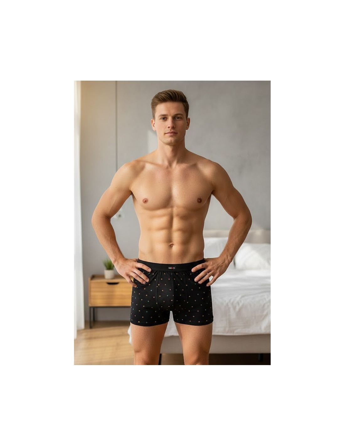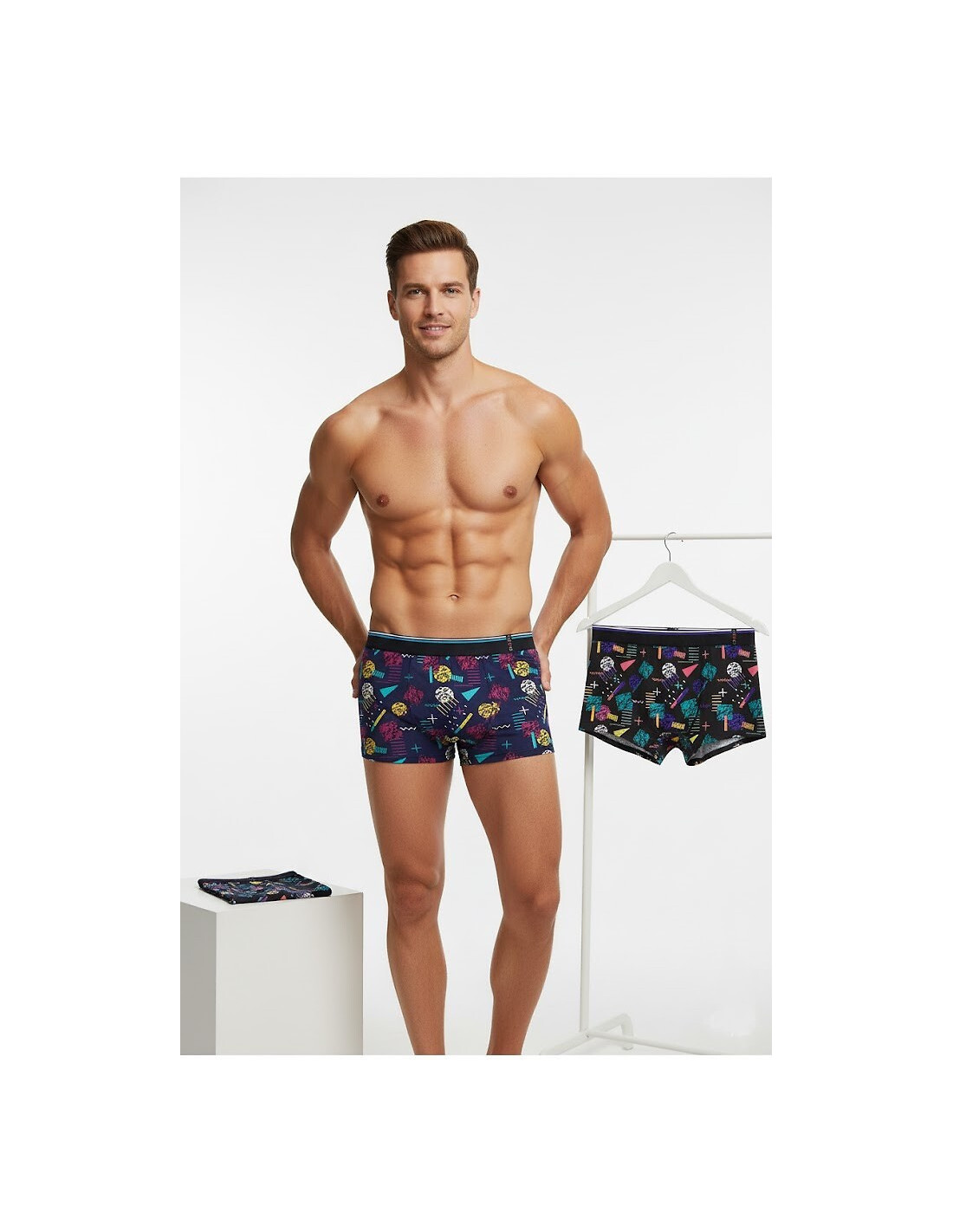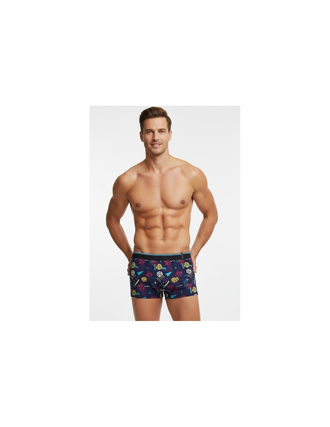 Medvilniniai vyriški boksininko šortai - dekoruoti spalvingu raštu - puikiai priglunda prie kūno - patogūs dėvėti - supakuoti dėžutėje - galimos spalvos: juoda, turkio, pilka, jūrų, bordo, džinsinė - parinkti atsitiktine tvarka