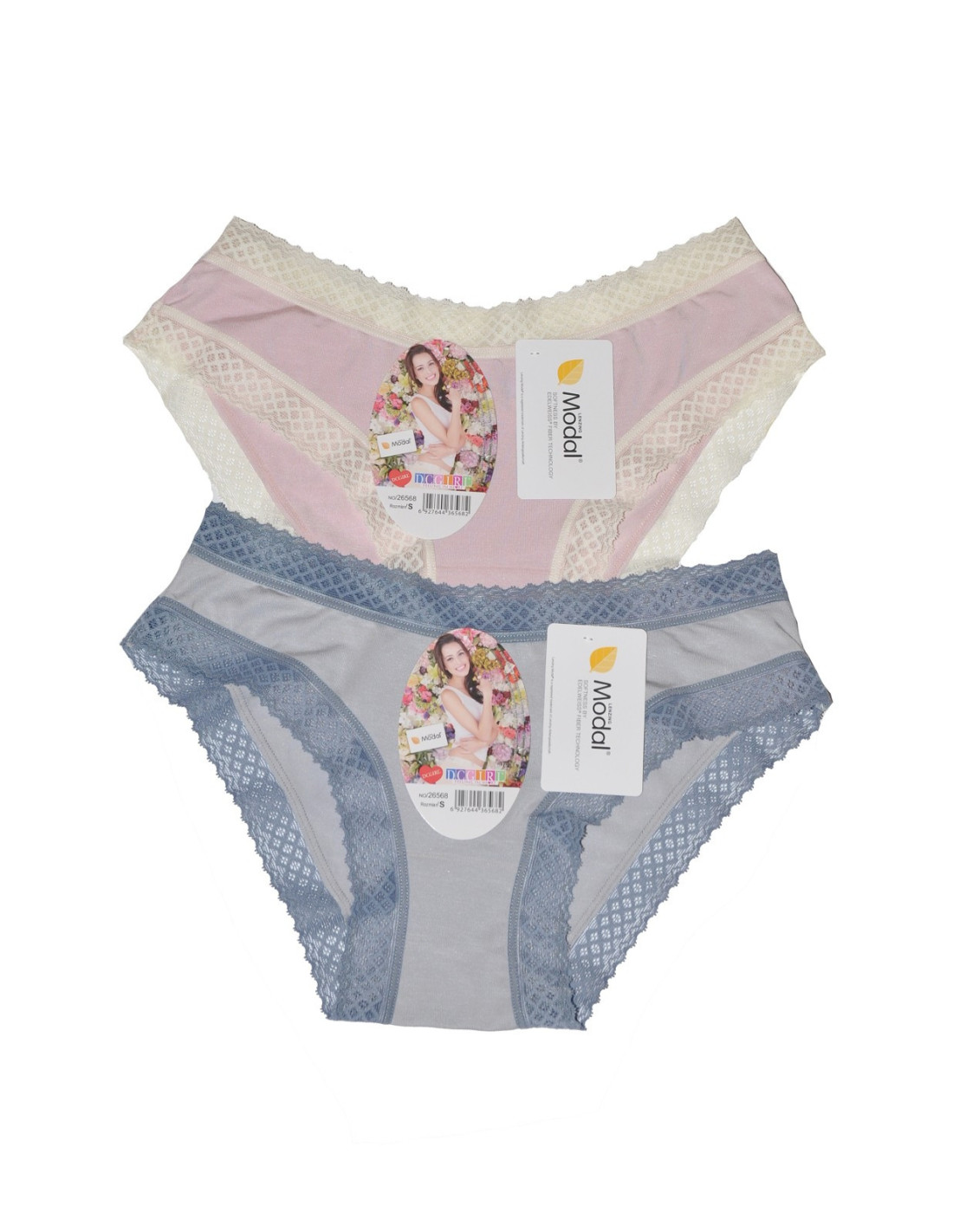 Vienspalvės moteriškos kelnaitės - minkštas kūnui modalas - liemuo ir kojos užbaigtos plokščiais elastiniais nėriniais - supakuotos plastikiniame maišelyje poromis - galimos spalvos: džinsinė-juoda, džinsinė-juoda, džinsinė-ecru