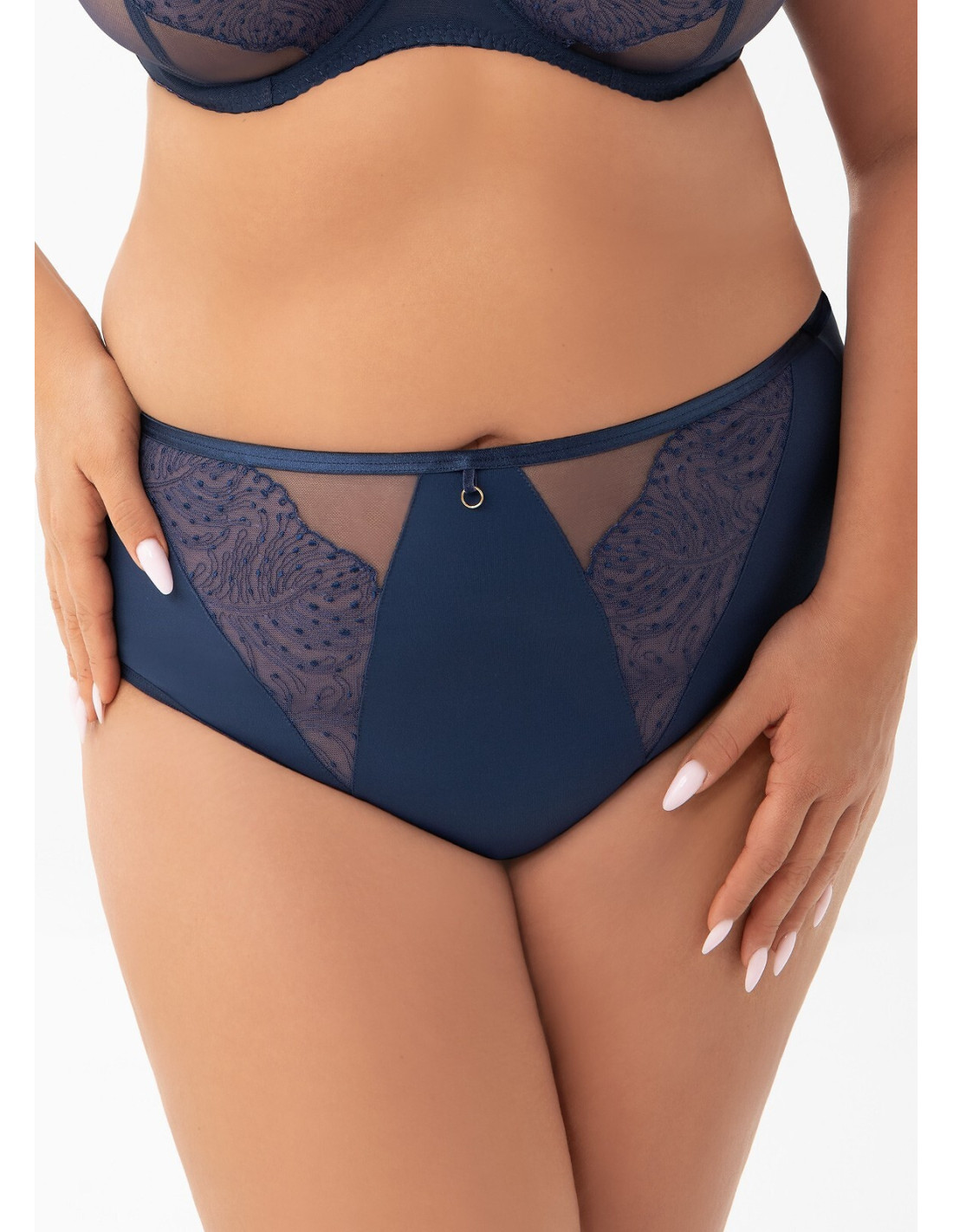 Moteriškos kelnaitės - pagamintos iš švelnaus mikropluošto - dekoratyviniai tinkliniai intarpai su subtiliu siuvinėjimu priekyje - plokščia elastinga juosmens juosta - padidintos klubų apimtys - nugaroje vertikali siūlė