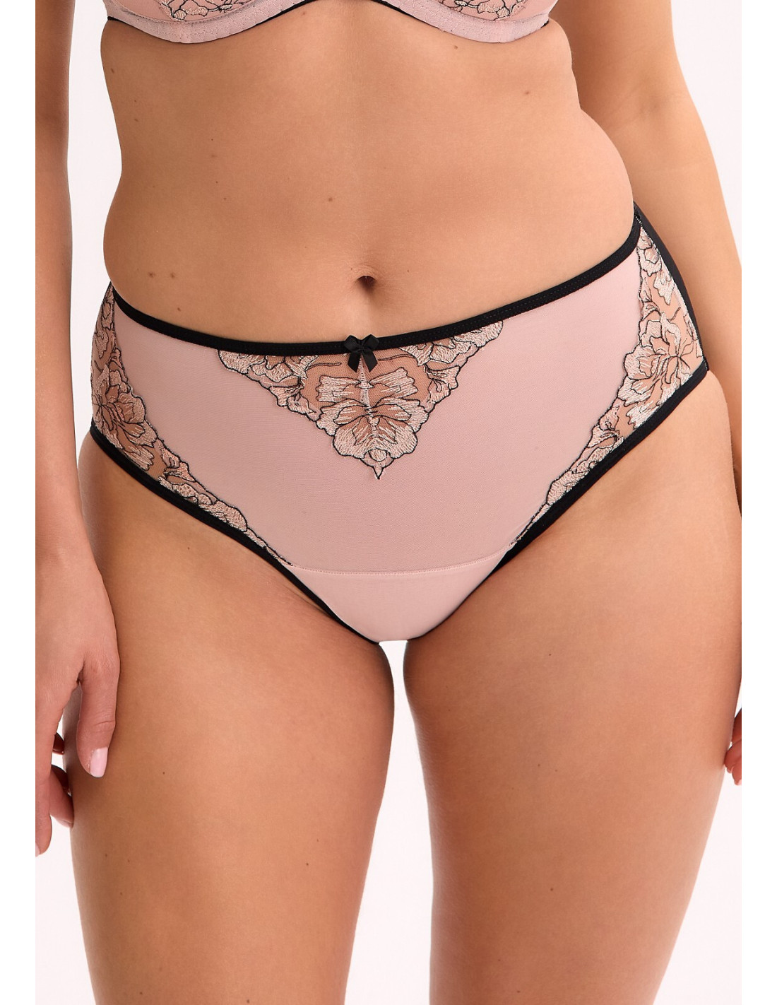 Klasikinio kirpimo moteriškos kelnaitės - pagamintos iš tinklelio ir švelnaus mikropluošto - priekis dekoruotas gėlių siuvinėjimu - nugaroje vertikali siūlė