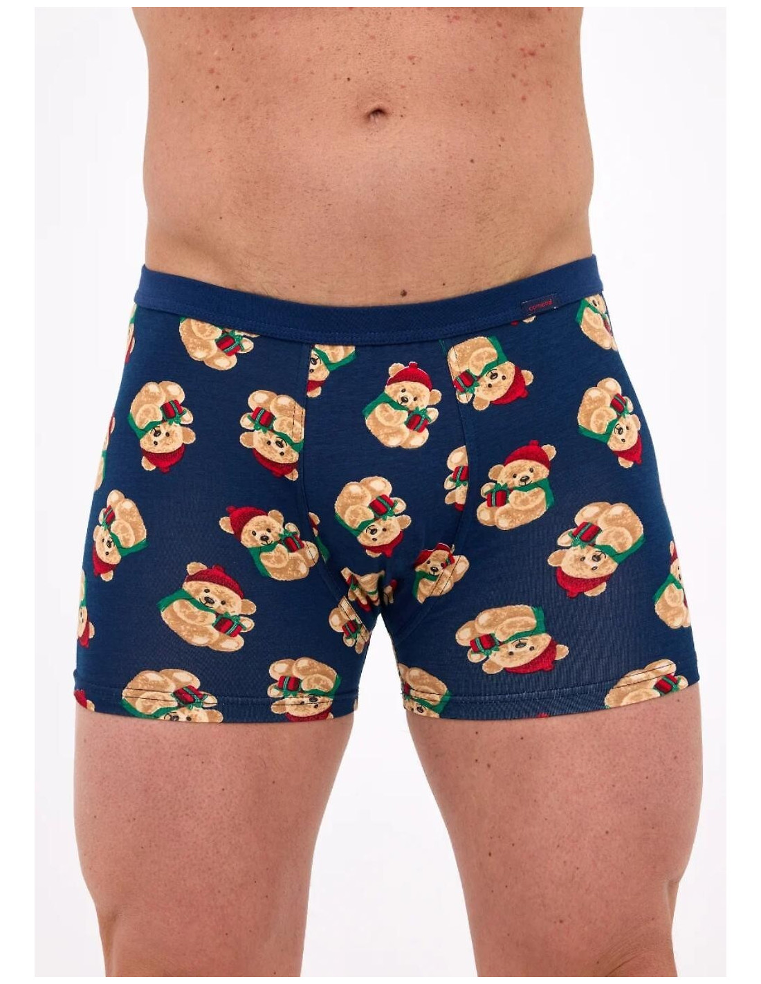 Šventinio leidimo vyriškos boksininko kelnaitės - tamsiai mėlynos spalvos su meškiukais - papuoštos žavingu meškiukų su kepurėmis ir šalikais, laikančių dovanas, raštu - idealiai tinka vyrams, mėgstantiems charakteringus apatinius drabužius - šiek tiek žaismingus, bet vis tiek elegantiškus ir stilingus. šiek tiek žaismingi, bet vis tiek elegantiški ir stilingi - pagaminti iš aukštos kokybės medvilnės su elastanu, kad puikiai priglustų ir būtų visiškai patogūs - elastinga juosmens juosta užtikrina stabilumą ir nespaudžia, o kalėdinis motyvas juos paverčia puikia kalėdinės dovanos idėja