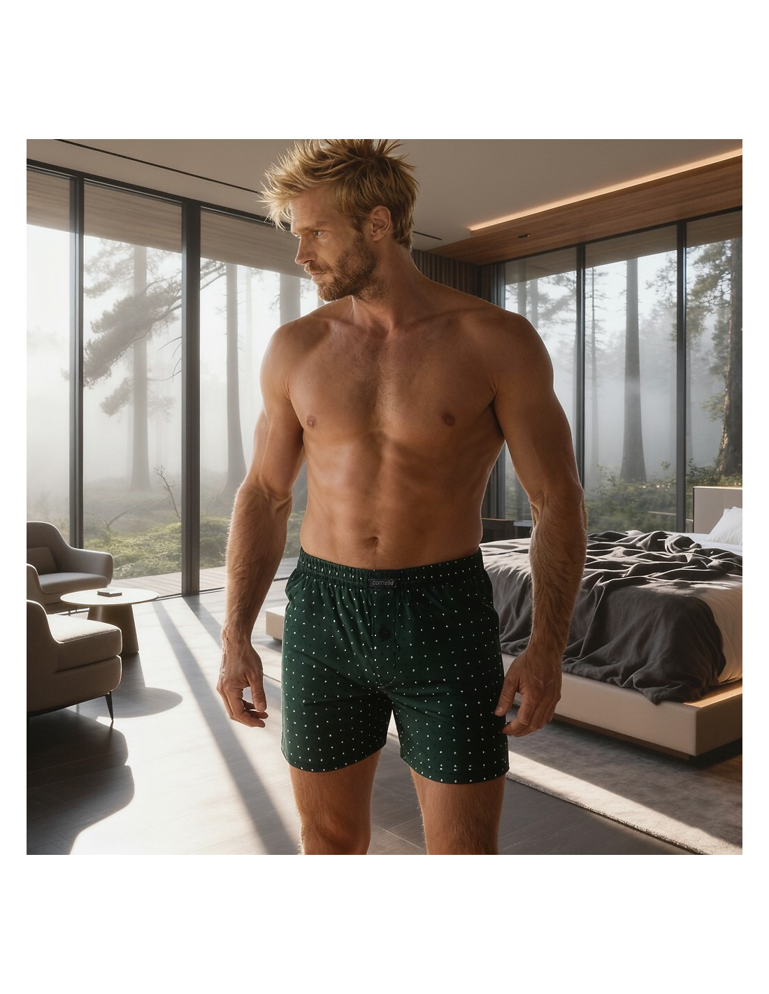 Vyriški boksininkų šortai - patogaus, laisvo kirpimo - aukštos kokybės medvilnė - raštuotas - užsegama sagomis - medvilne apsiūta elastinga juosta juosmens srityje